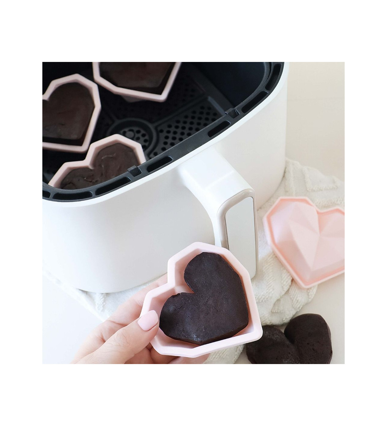 Ces six moules en forme de cœur sont faits pour passer à l’air fryer et ainsi vous offrir une cuisson plus saine et toujours parfaite. Ils passent aussi au four et au congélateur, cette polyvalence vous permettant d’adapter toutes vos recettes dans ce format romantique.