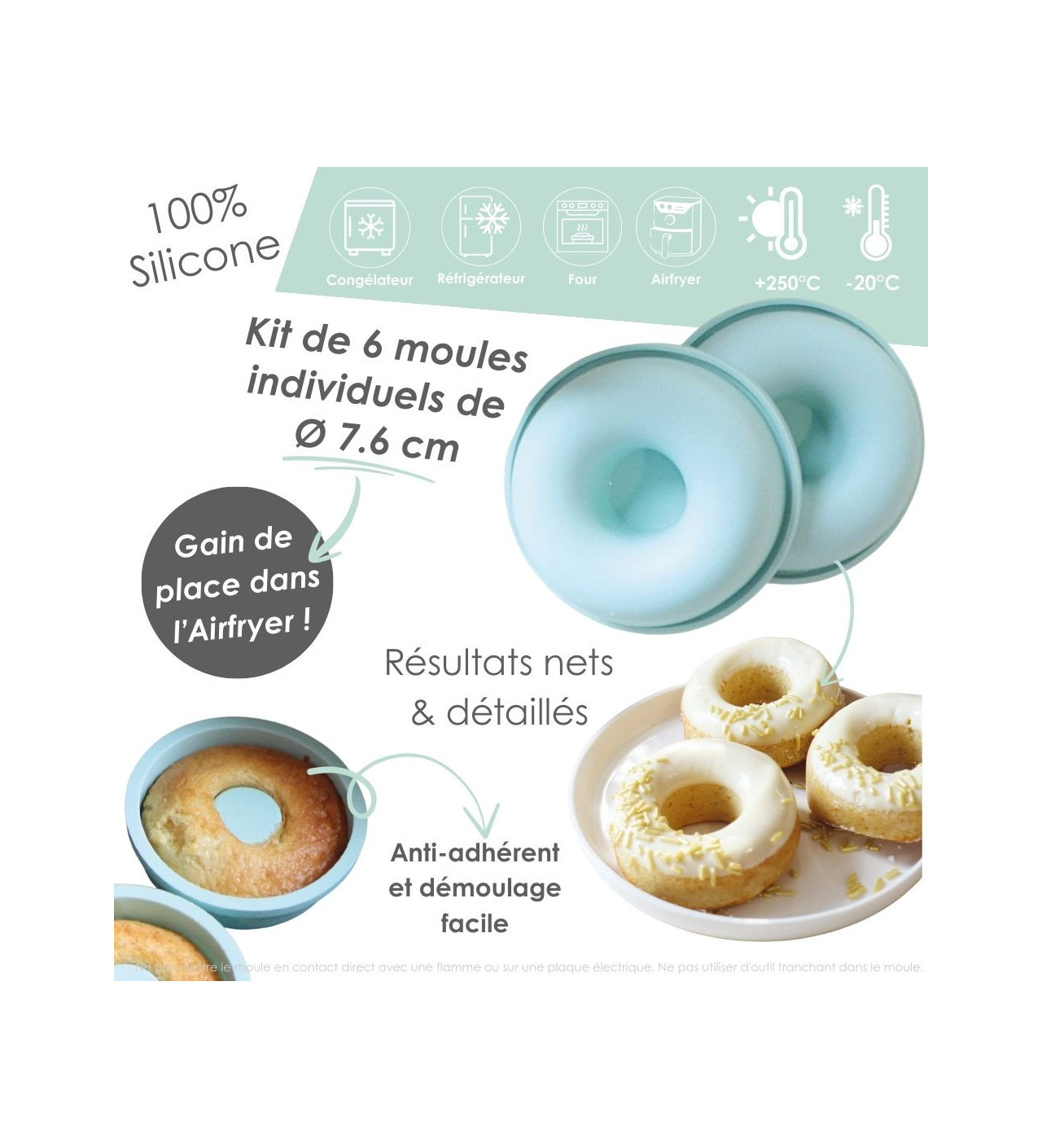 Ces moules en silicone garantissent une cuisson homogène et une dorure impeccable pour des beignets qui vous feront saliver d’avance. Le démoulage sera facilité par la matière des moules et sans défaut.