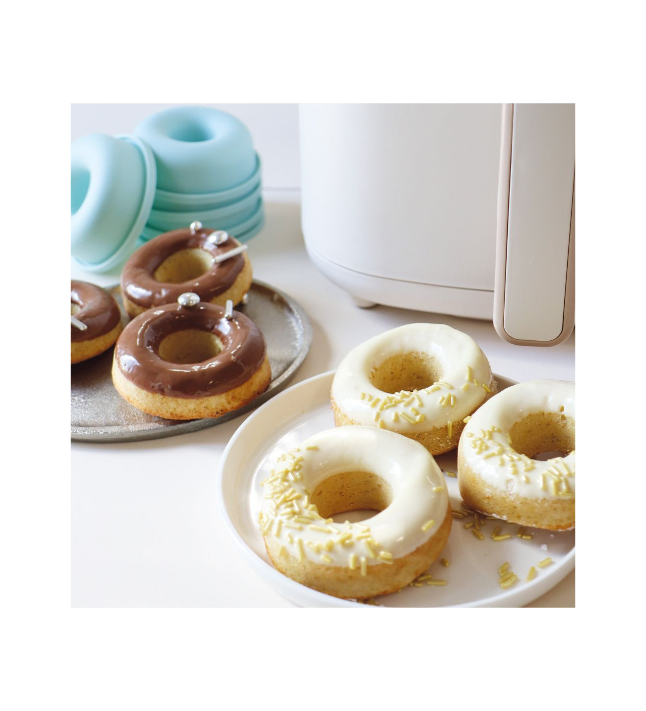 Si les moules pour donuts Scrapcooking sont pensés pour une utilisation à l’air fryer, ils sont aussi compatibles avec un passage au four ou au congélateur. Vous pourrez donc créer des mets divers et variés en forme de donuts sans la moindre peine.