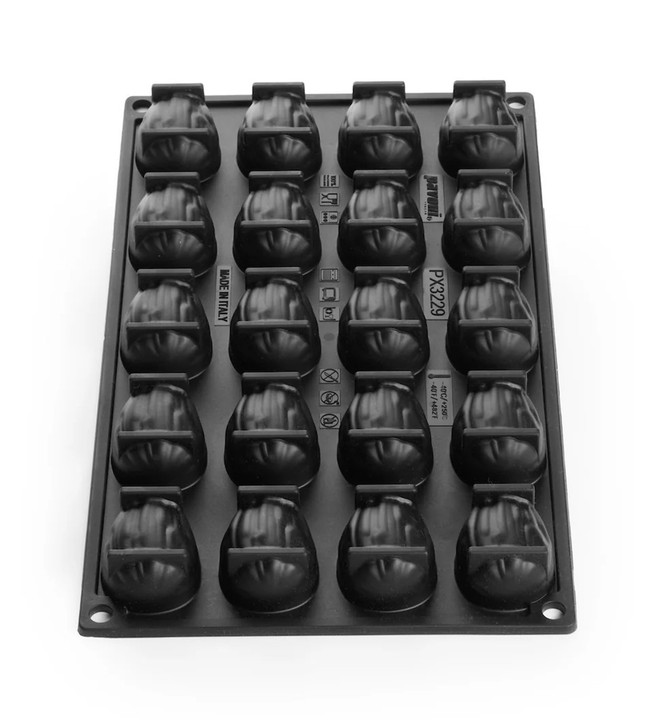 Fabriqué en silicone platinum, ce moule amande garantit une flexibilité optimale et un démoulage facile, sans accroc. Chaque empreinte de 20 ml reproduit fidèlement la délicate forme de l’amande, pour des desserts aussi beaux que savoureux. Avec une contenance totale de 400 ml et une plaque de 30 x 17,5 cm, ce moule Pavoni s’adapte à toutes vos envies créatives.