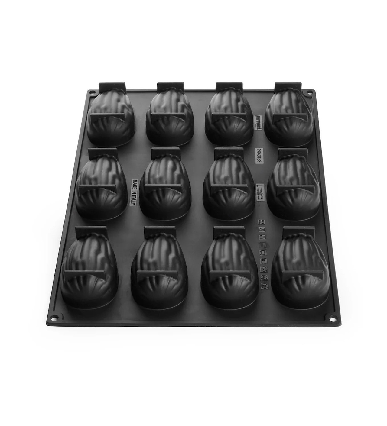 Chacune des empreintes de ce moule amande mesure 120 ml (9,3 x 5,8 x H 3,8 cm) et permet de réaliser des desserts élégants, avec une contenance totale de 1,44 litre sur une plaque de 40 x 30 cm.