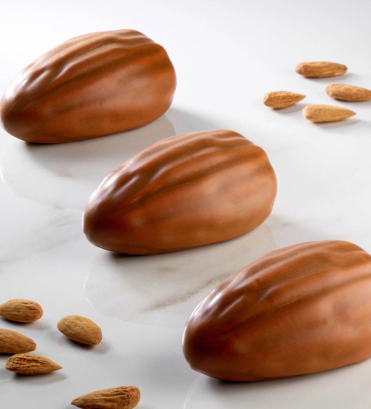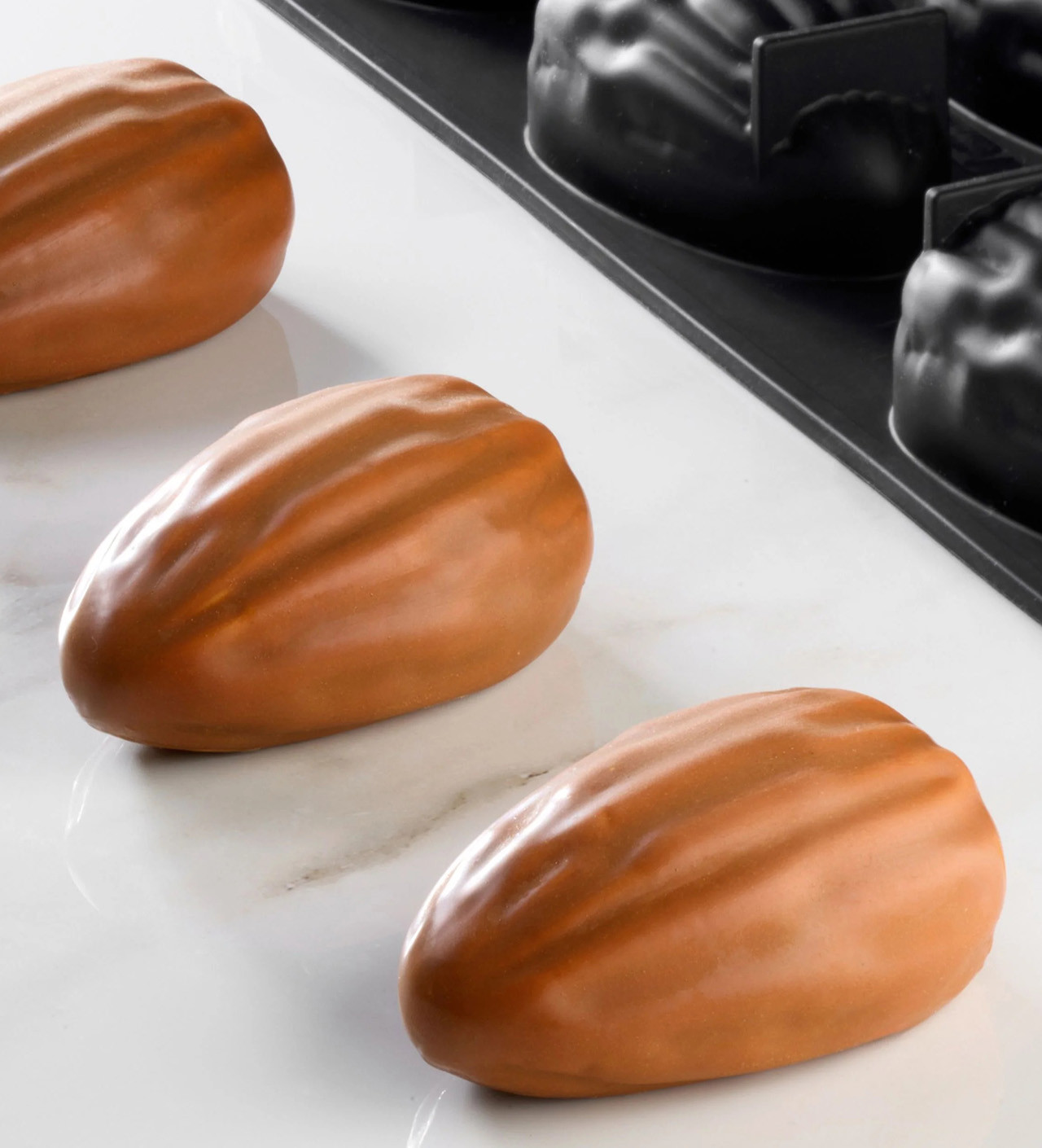 Pensé pour sublimer vos créations, ce moule trompe-l'œil, modèle Almond dévoile 12 empreintes en forme d’amandes, aux détails fins et au design aussi original que raffiné. Créé en collaboration avec le chef pâtissier Emmanuele Forcone, ce moule silicone platinum garantit un démoulage facile et un rendu impeccable où réalisation devient un petit bijou pâtissier, à la fois réaliste et irrésistiblement gourmand.