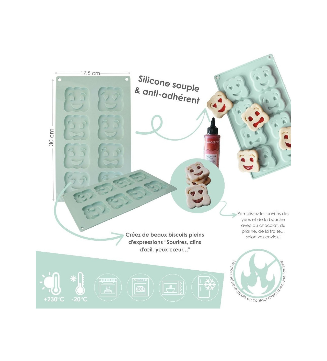 Moule Silicone Biscuit Sourire 30 x 17,5 x H 1,1 cm Scrapcooking