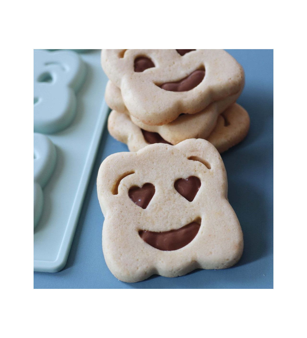 Remplissez chacune des empreintes de ce moule à biscuits de votre recette de pâte favorite, puis laissez votre four faire son travail. À la sortie de ce dernier, vous pourrez aisément démouler des biscuits délicieux à l’air jovial.