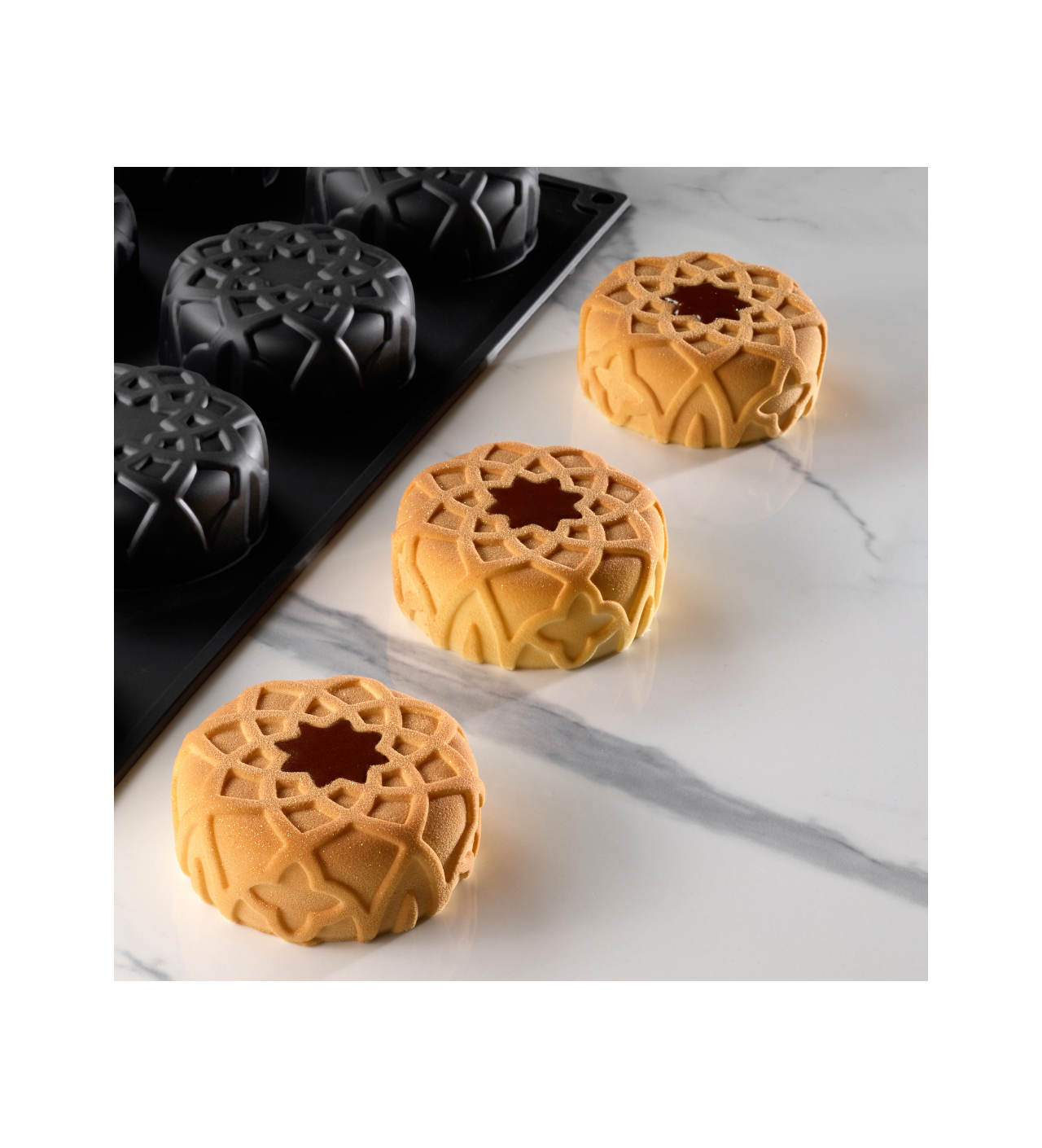Ce moule, né de la collaboration entre la marque italienne Pavoni et le talentueux chef pâtissier Fadi Kurdi, révèle tout le raffinement des motifs du Moyen-Orient. Chaque empreinte de ce moule à gâteau, arbore un relief raffiné et unique qui évoque les arabesques précieuses et les détails des décors orientaux.