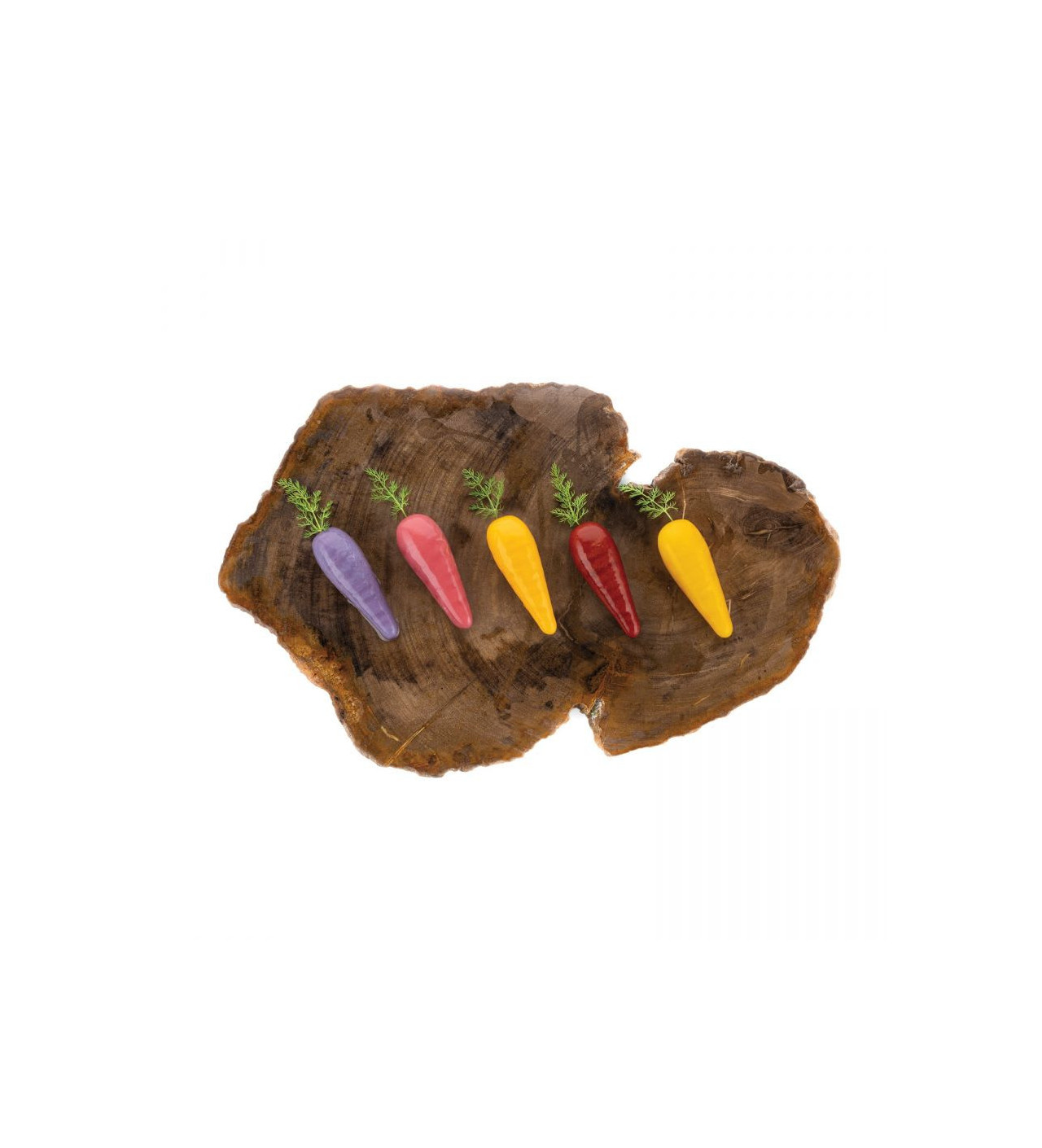 Donnez à votre repas de Pâques une toute nouvelle dimension en disposant sur les assiettes de vos convives d’appétissantes carottes en trompe-l’œil. En vous aidant du moule décor carotte Silikomart, vous pourrez aisément créer un effet de surprise pour vos fêtes de Pâques ou en toutes autres occasions.