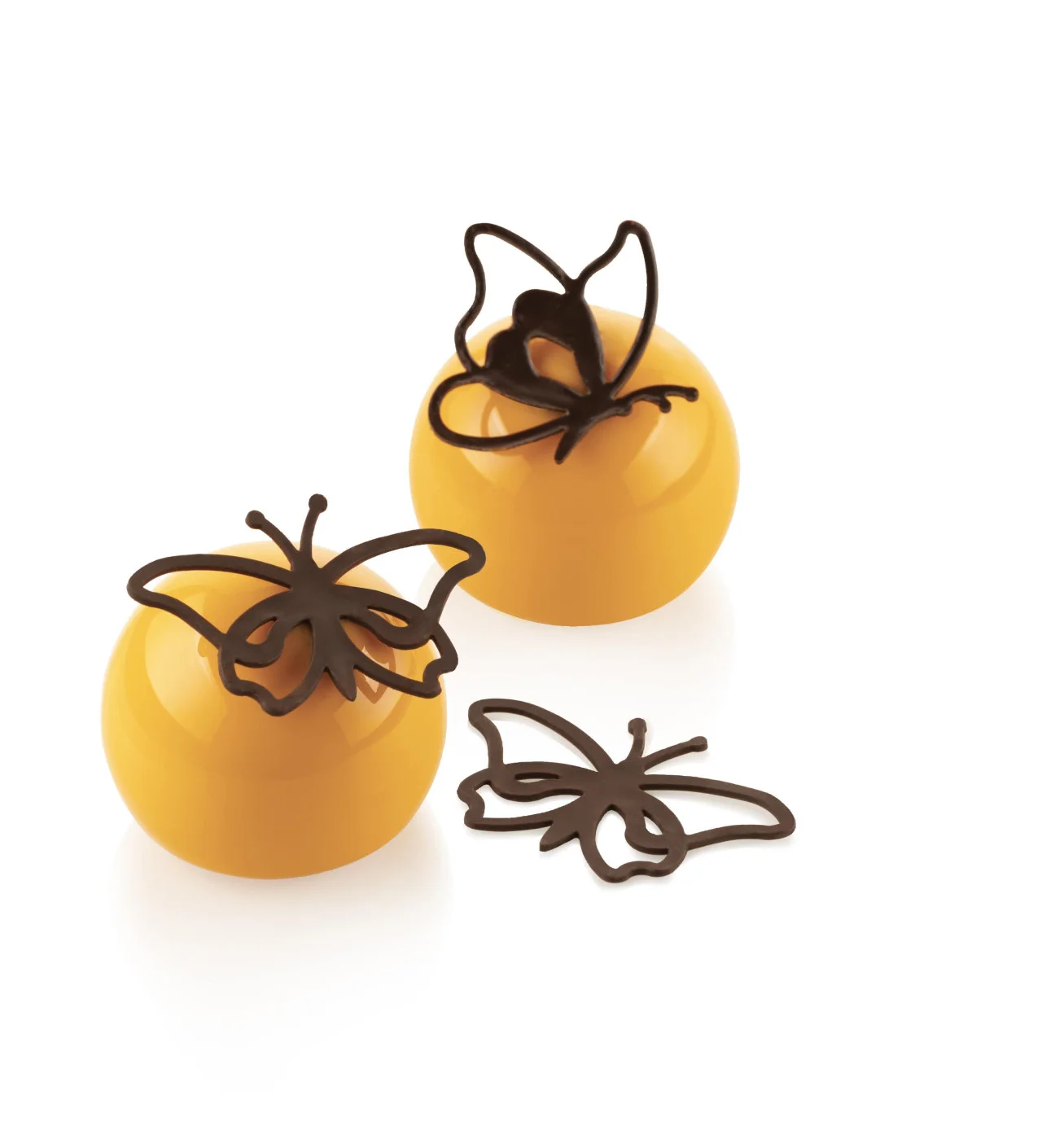 Voletant avec grâce de fleur en fleur, les papillons se déposent désormais sur les gâteaux et les entremets. Parfaits pour apporter un décor subtil et élégant à vos pâtisseries, les papillons offrent une touche de fantaisie à des préparations autrement ordinaires.