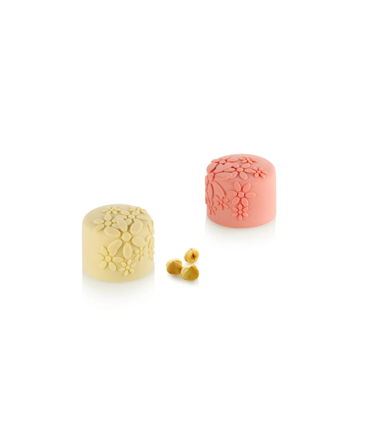 Le printemps et l'été s'invitent dans vos desserts avec une envolée de fleurs délicates. Créé en collaboration avec le chef Tom Coll, le moule en silicone fleur antea Silikomart se présente sous la forme de ronds sur lesquels sont apposées des fleurs subtiles.