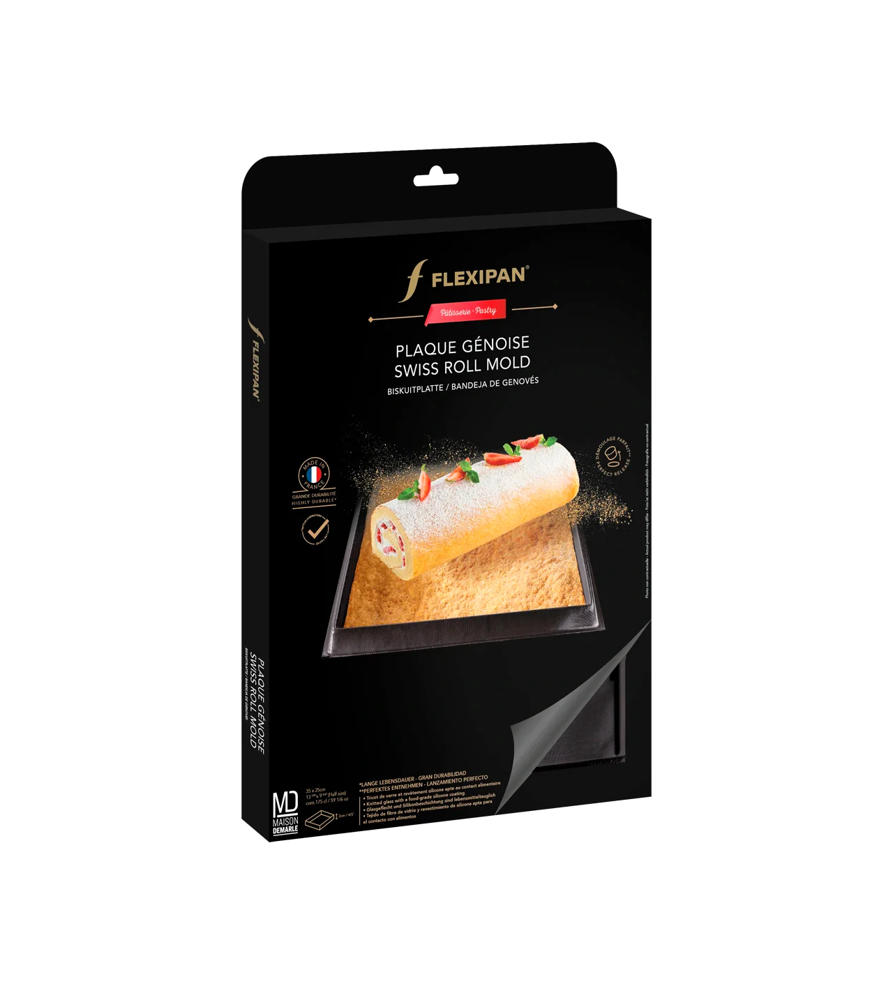 Pour confectionner des roulés, une bûche, ou plus simplement pour un gâteau classique, choisissez la performance du moule à génoise Demarle. Confectionné en tricot siliconé, ce moule Flexipan Demarle fait l’amalgame de la souplesse et de la robustesse.