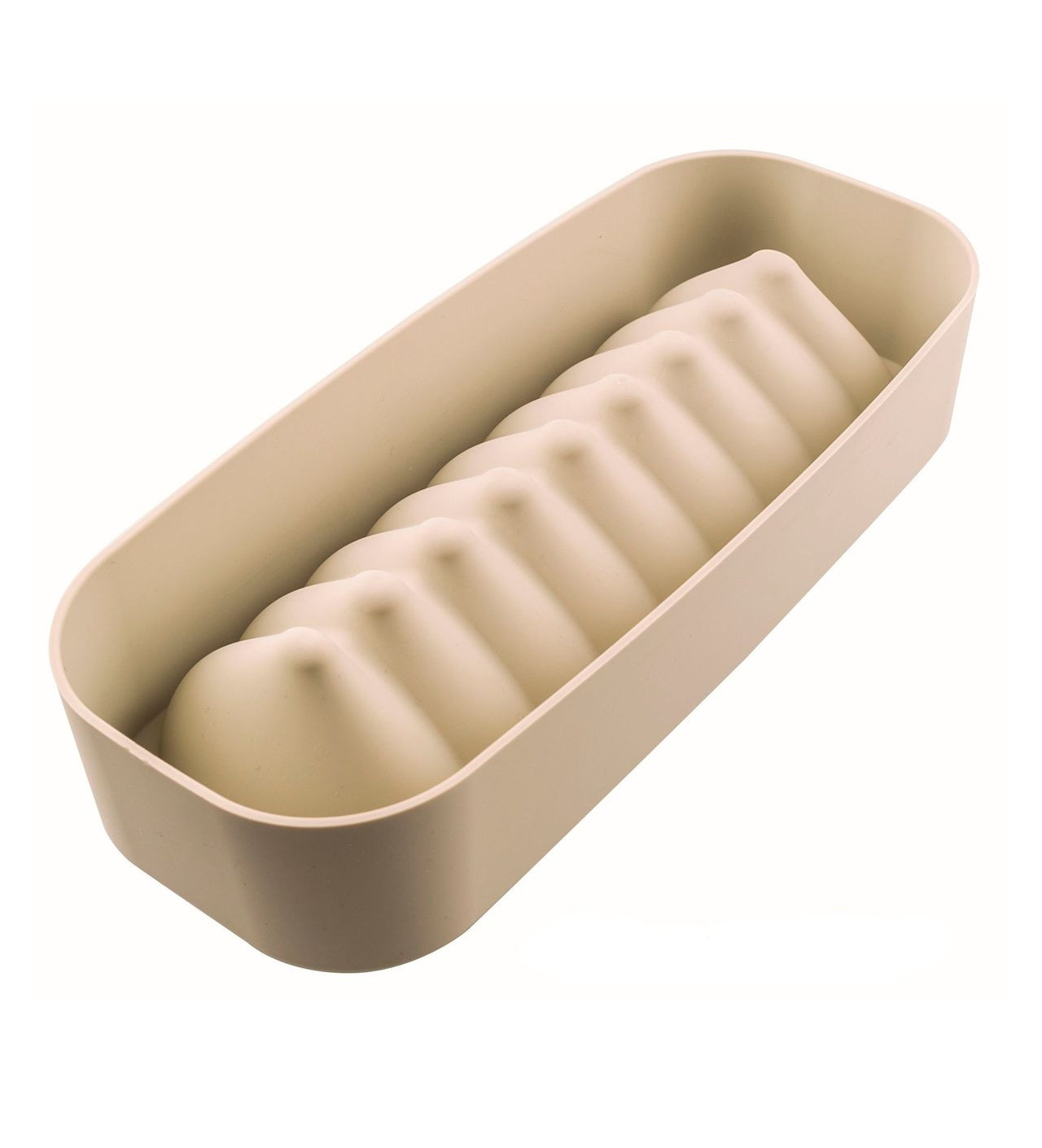 Entremets frais et léger ou gâteaux généreux et moelleux, exprimez votre gourmandise et votre créativité avec le Moule Silicone Meringa Silikomart 3D Design. Ce dernier mesure 25 cm de long pour 9 cm de large et 7.5 cm de haut.