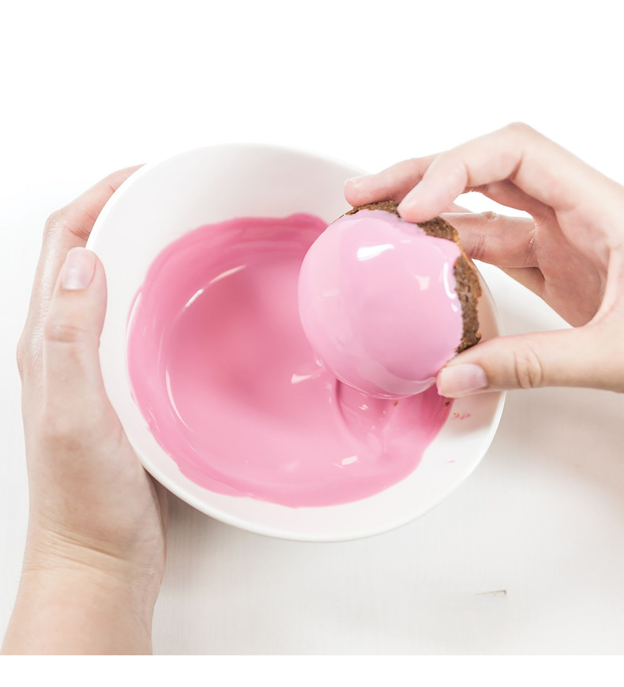 Pour obtenir un glaçage miroir irréprochable, veillez à ce que votre dessert soit bien froid. Ensuite, versez le glaçage généreusement.