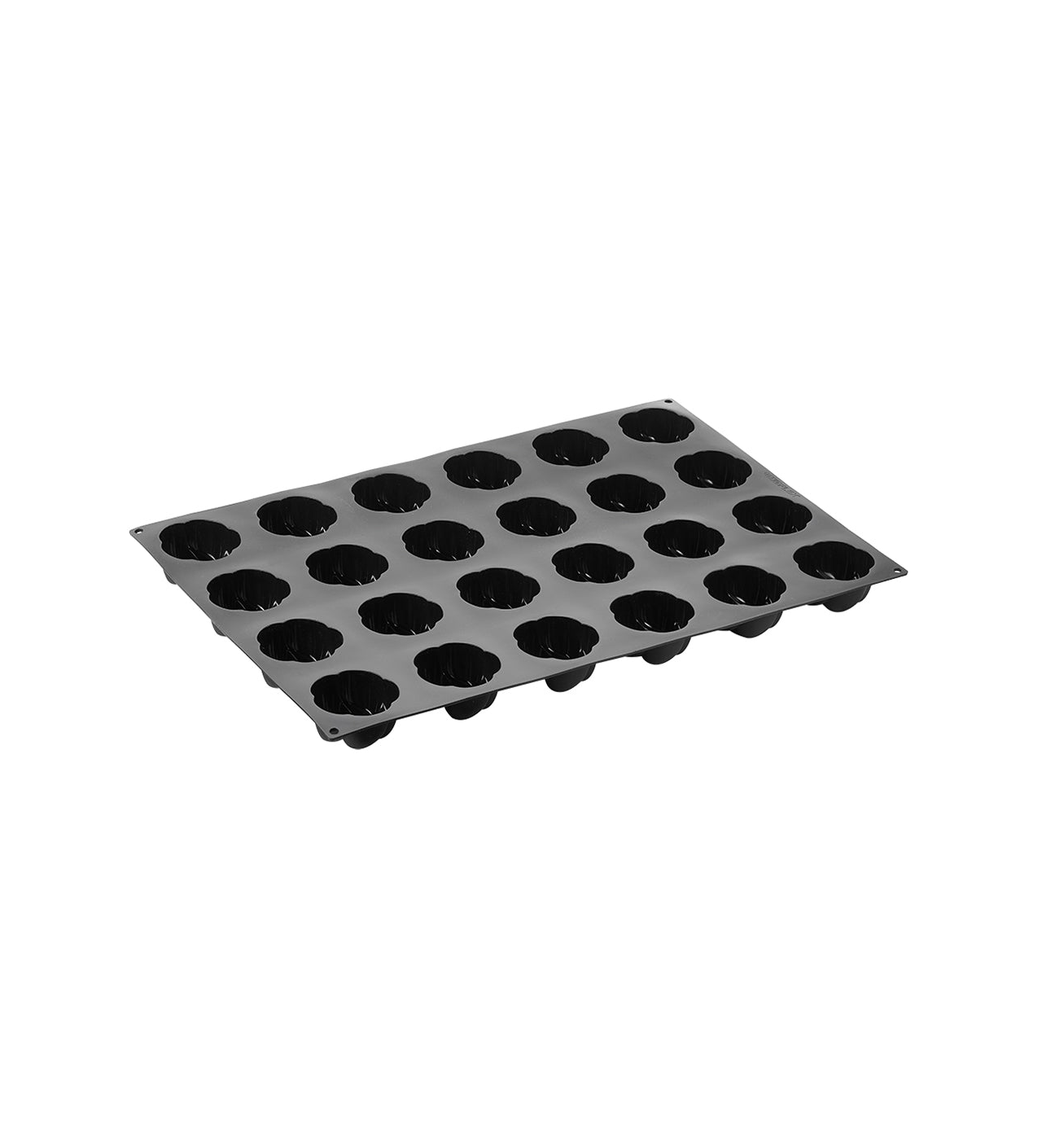 Ce moule individuel au design original en forme de fleur à spirale offre une touche d’élégance et de raffinement à vos entremets, mousses ou inserts. Composé de 24 empreintes identiques de 7,5 cm de diamètre sur 3,8 cm de hauteur, ce moule Pavoni permet de réaliser des portions individuelles de 130 ml chacune.