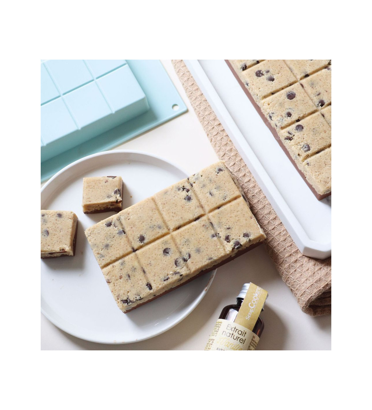 Confectionnez des tablettes Dubaï, fourrées au praliné, ou bien à la purée de fruit, et accordez-vous un moment gourmand grâce au moule à tablette Scrapcooking.