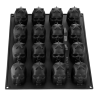 Idéal pour Halloween, ce moule en silicone platinum professionnel offre une qualité exceptionnelle et un démoulage facile grâce à sa flexibilité. Avec les 16 empreintes identiques de ce moule à gâteau, chaque création en forme de tête de mort mesure 5 x 7 cm et atteint une hauteur de 6 cm, offrant une contenance de 120 ml par empreinte.