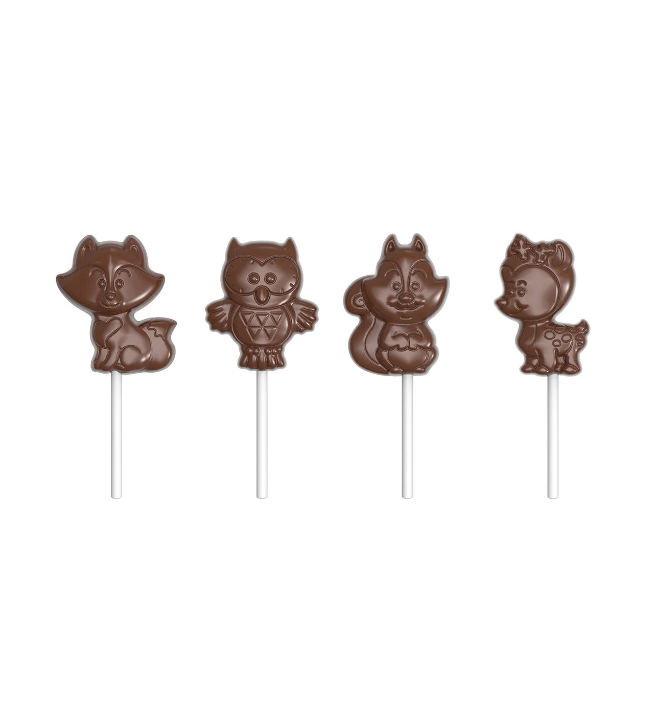 Moule Sucette Chocolat Animaux de la Forêt 65 mm (x4) Chocolate World