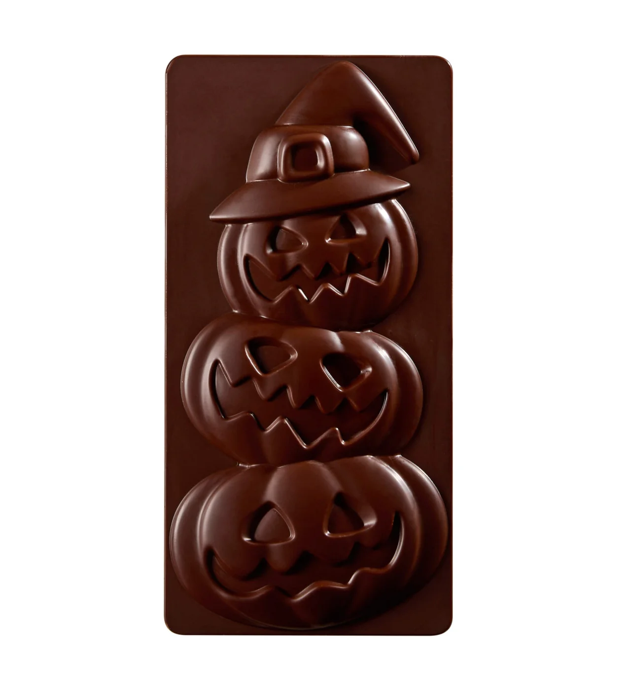Avec ses trois empreintes, vous pourrez réaliser plusieurs tablettes de chocolat à la fois et varier les plaisirs en préparant différentes saveurs. Le design à la fois sublime et effrayant du moule présente trois citrouilles empilées, surmontées d'un chapeau de sorcière pour ajouter une touche amusante et malfaisante à vos chocolats.
