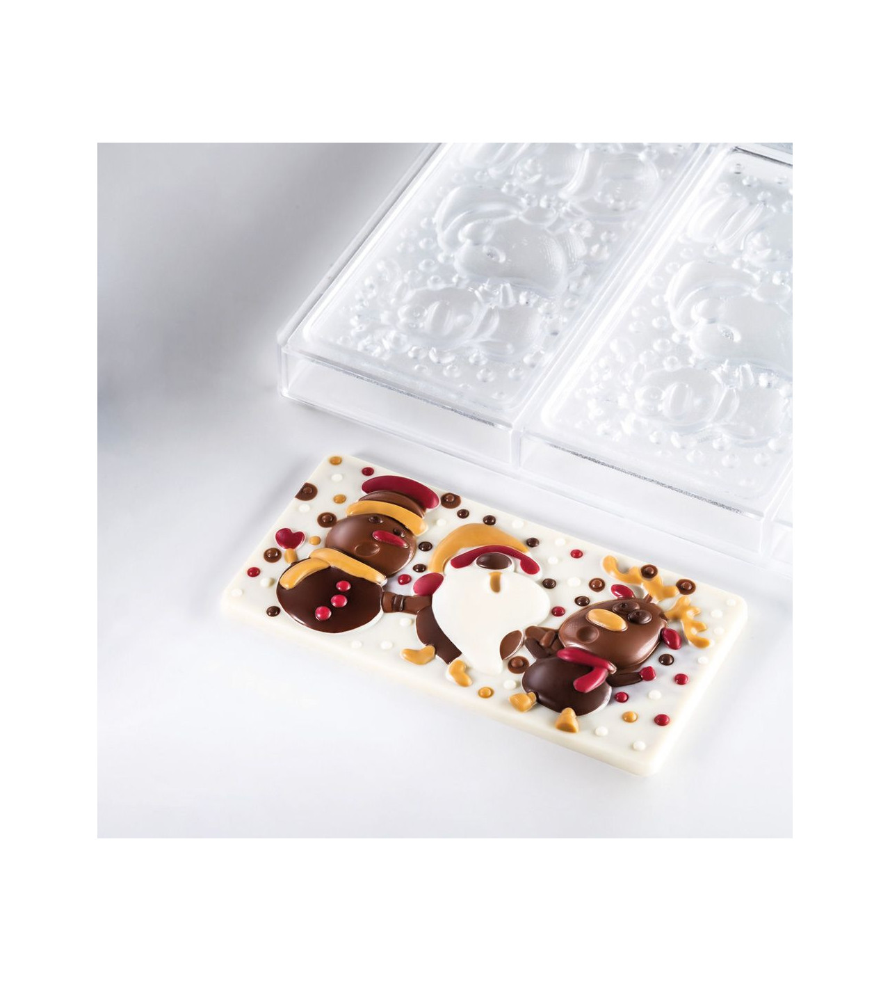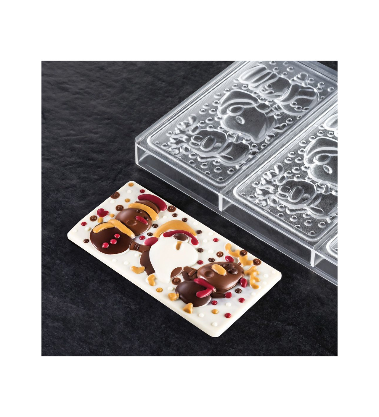 Moule Tablette Chocolat Père Noël, Renne et Bonhomme de Neige 15,4 x 7,7 cm Pavoni