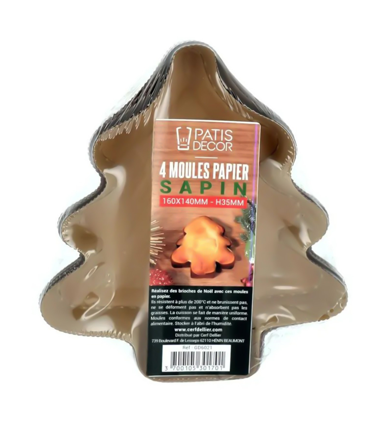 D’une dimension de 24,3 par 16,1 cm, ces 4 moules cuisson identiques sont conçus pour une utilisation simple et pratique. Adaptés à la cuisson jusqu’à 200°C, ces moules en papier garantissent une cuisson homogène où vos créations prennent une jolie silhouette de sapin, sans démoulage nécessaire.