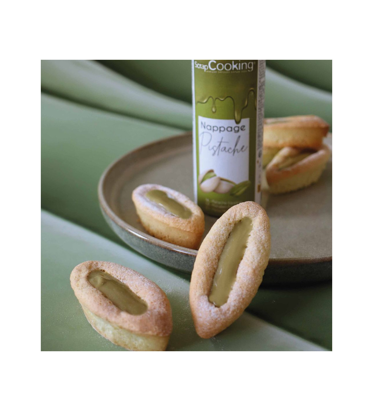 Recouvrez vos desserts en tous genres d’une couche gourmande de nappage à la pistache pour en transformer à la fois l’aspect et le goût. Scrapcooking met son savoir-faire à votre service pour un cake design toujours plus simple et délicieux.