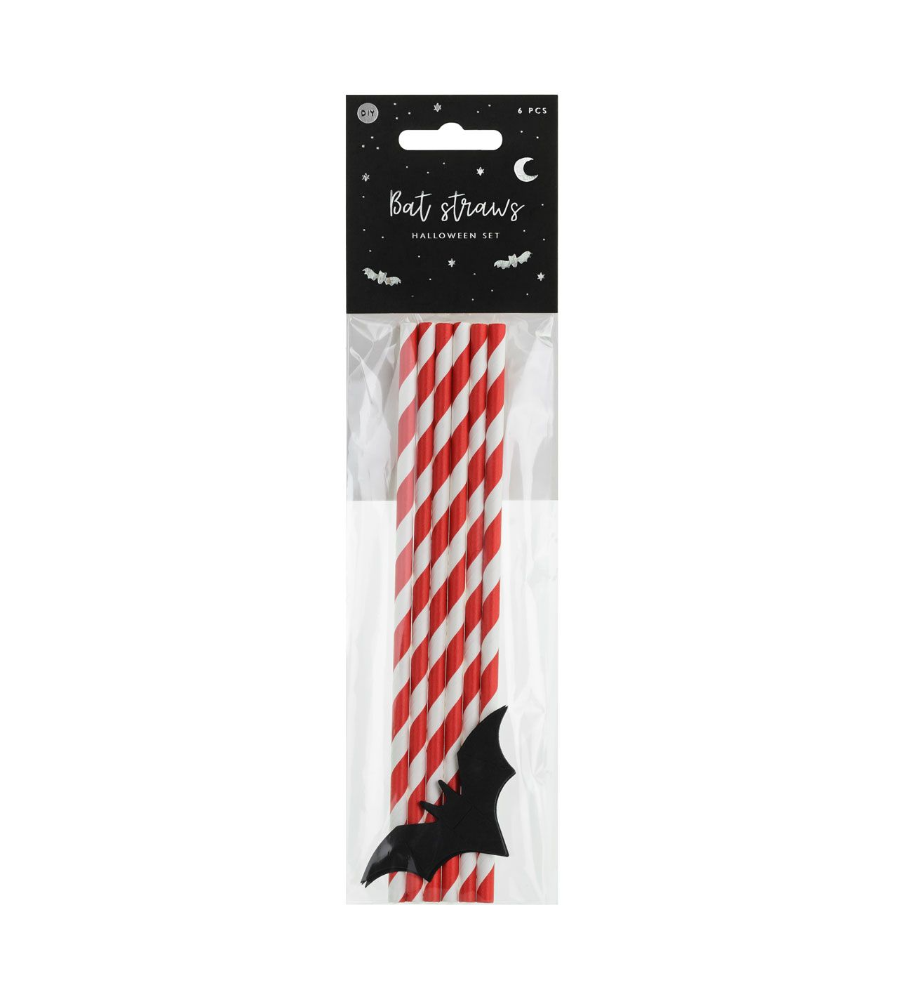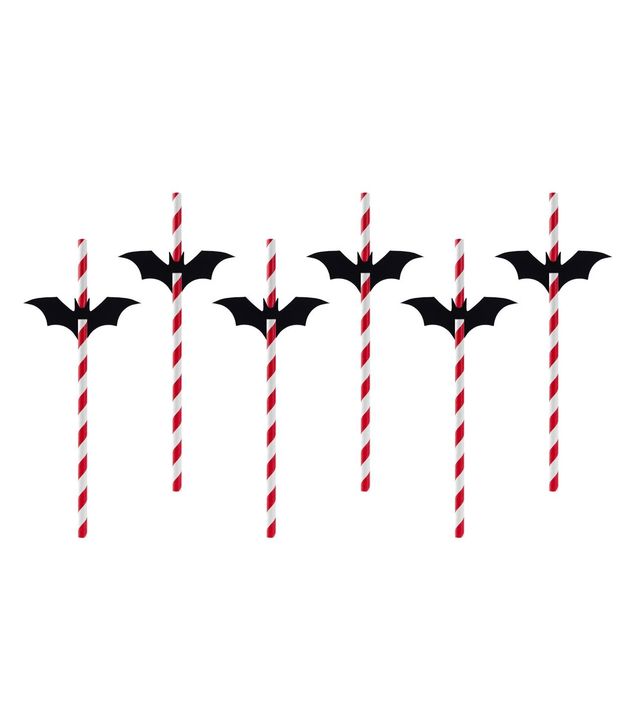 Pailles en Papier Halloween Chauve-Souris PartyDéco (x6)