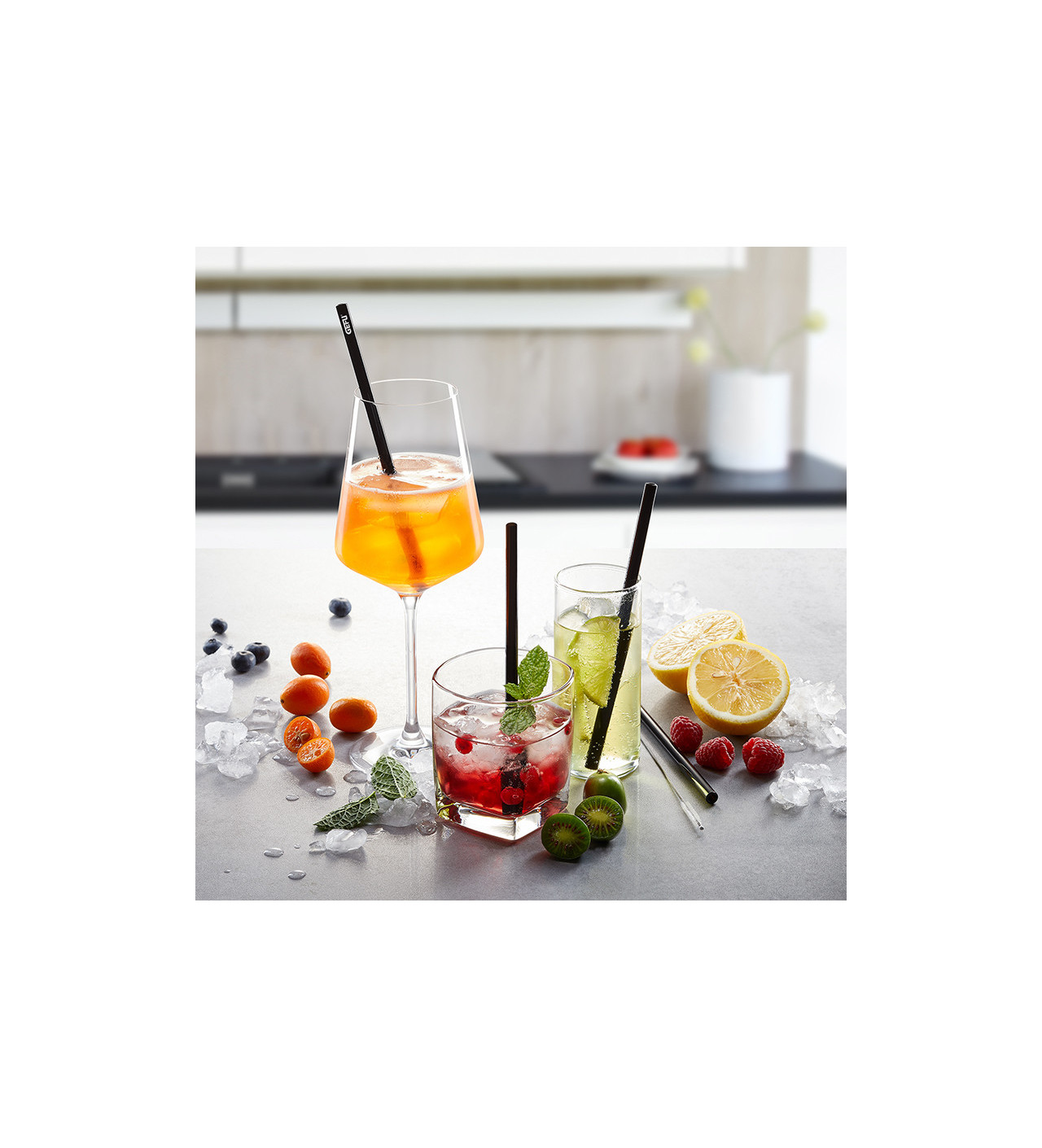 Comme elles mesurent 18 cm de long, ces pailles Gefu peuvent convenir à des verres grands comme petits et mettront en valeur les couleurs de vos créations.
