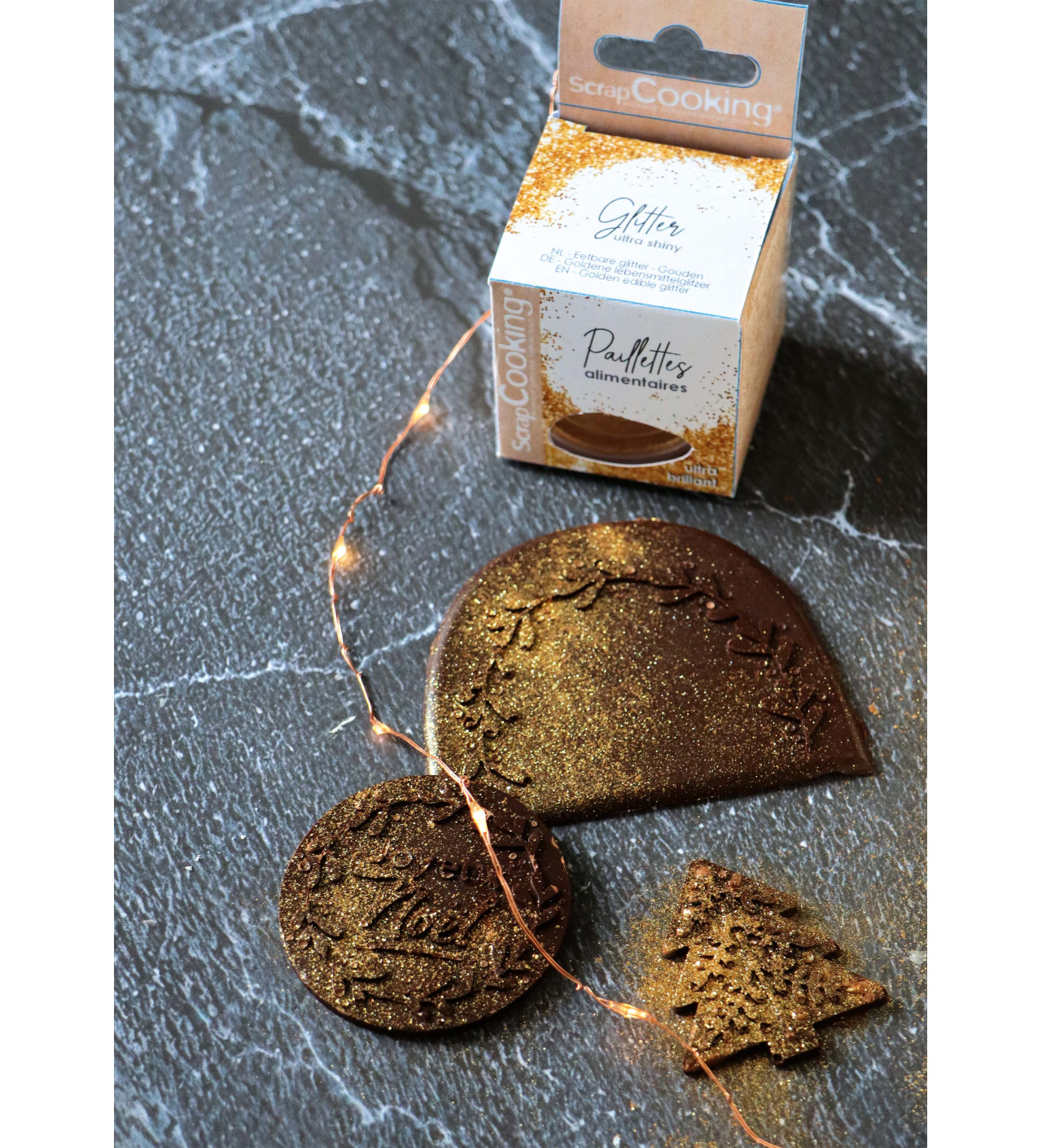 Ajoutez des paillettes dans votre vie, et surtout dans votre cuisine en saupoudrant vos réalisations des paillettes alimentaires dorées Scrapcooking.