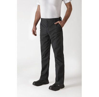 Pantalon de Cuisine Mixte Rayé Noir/Blanc TIMEO T.38 Robur