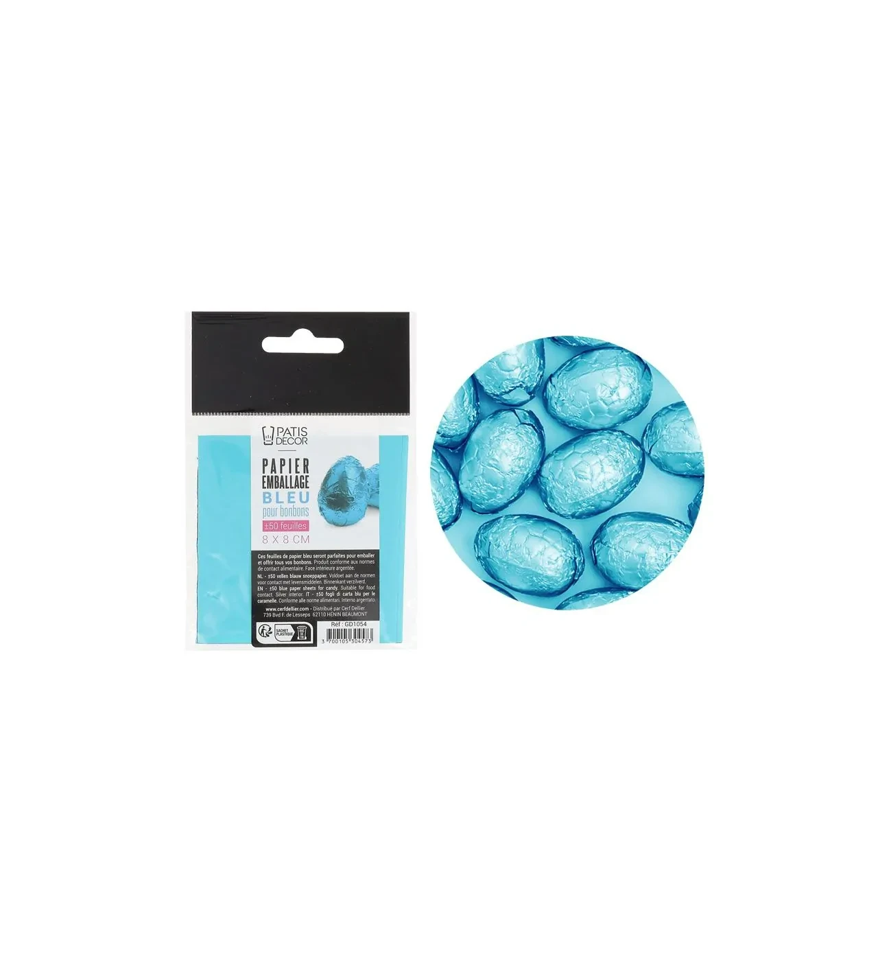 Offrez à vos chocolats de Pâques une présentation élégante avec le Papier Bleu Métallisé Emballage Bonbon (x50) Patisdécor.