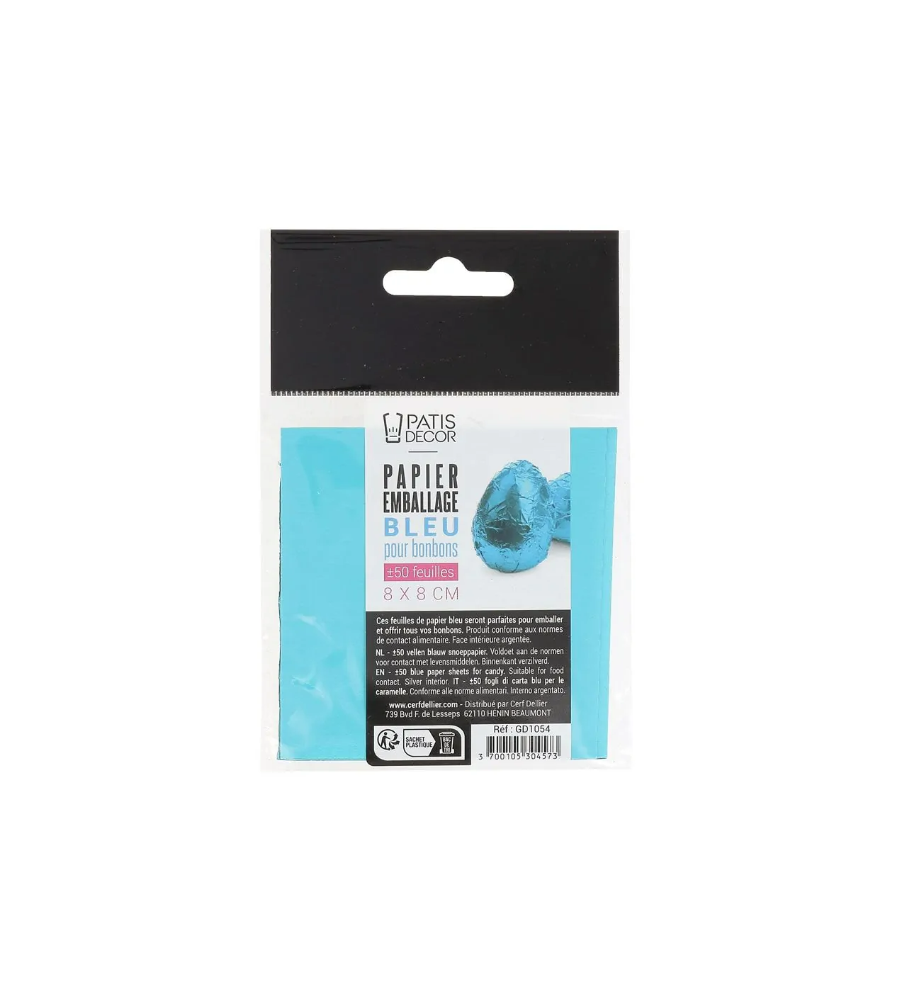 Papier Bleu Métallisé Emballage Bonbon (x50) Patisdécor