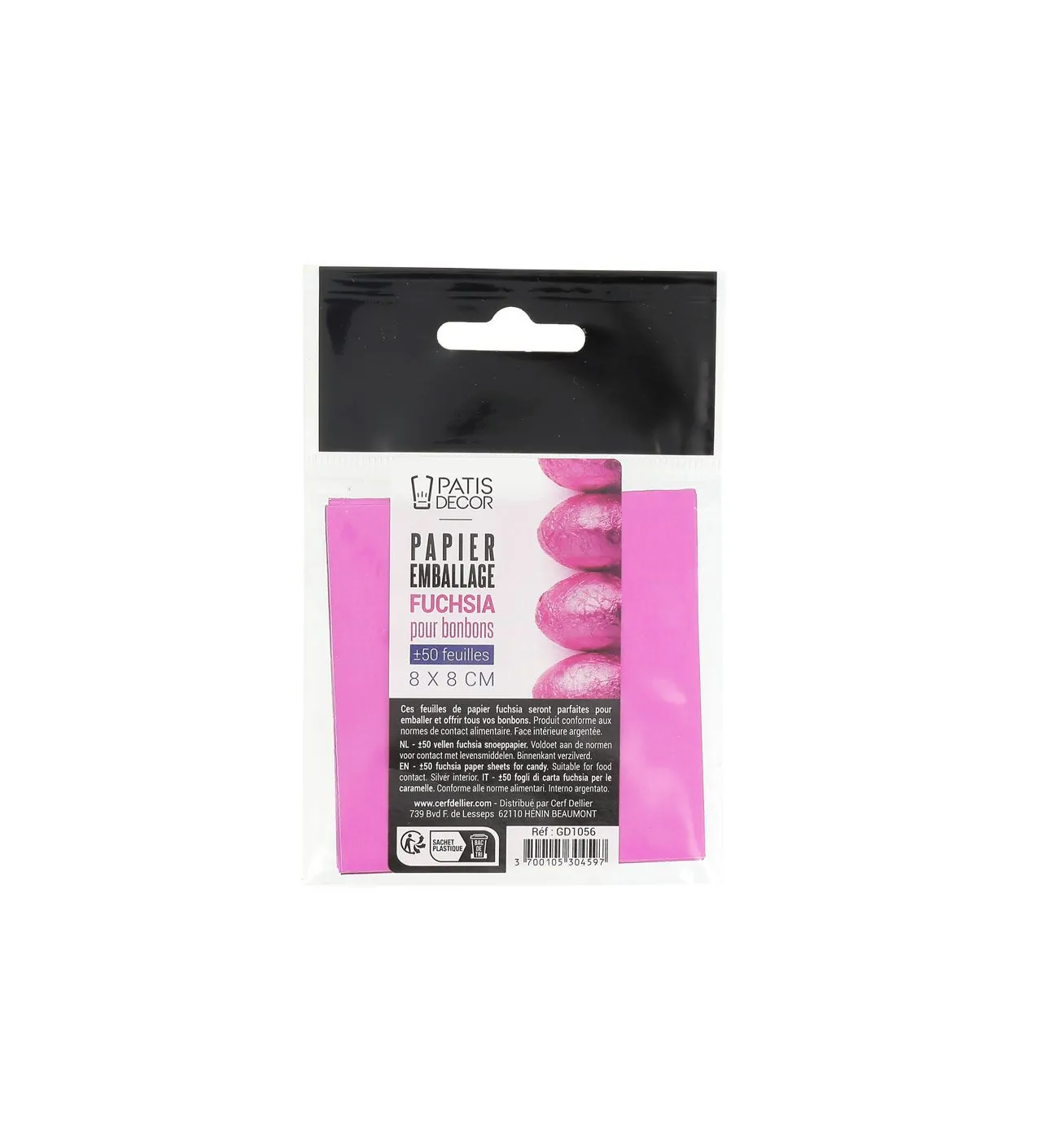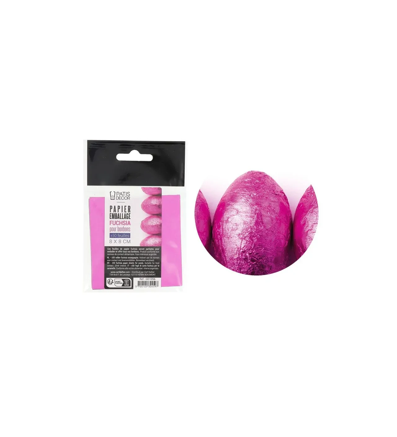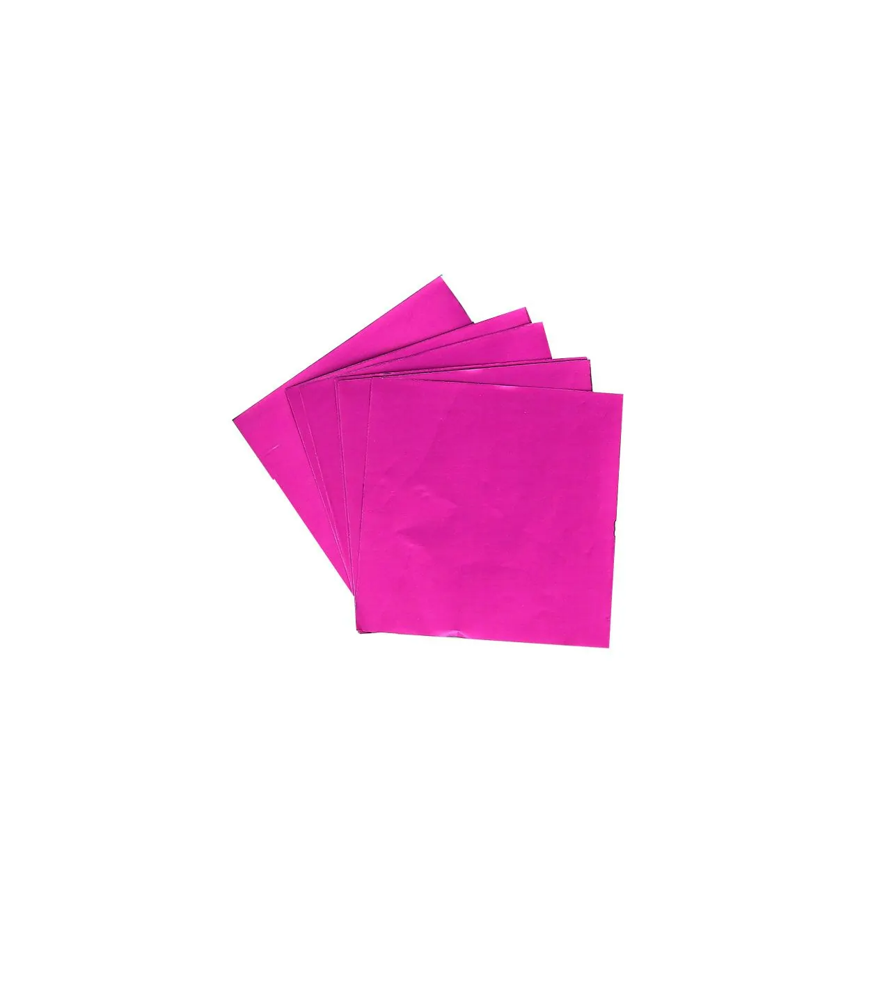 Cet emballage chocolat rose éclatant contraste délicatement avec son intérieur argenté pour un effet raffiné et festif. Conçu en aluminium apte au contact alimentaire, ce papier emballage protège parfaitement vos chocolats tout en restant facile à manipuler grâce à son format carré de 8 cm.