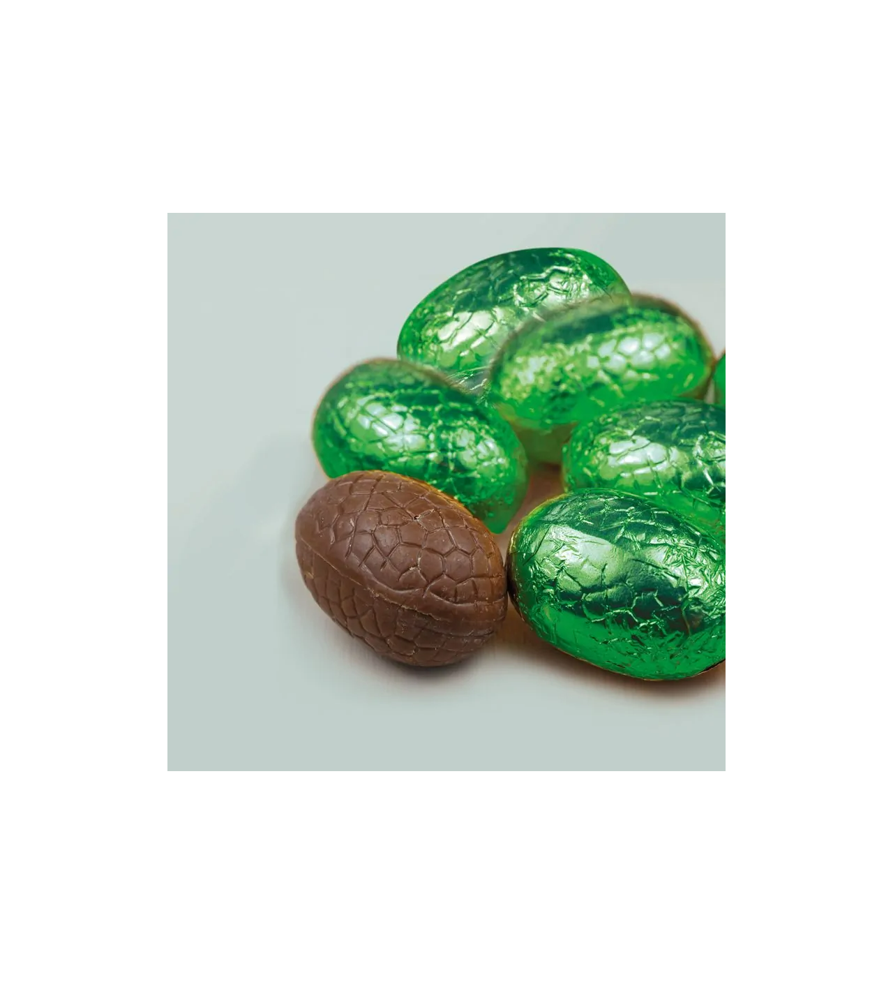 Ce papier emballage à l’extérieur vert métallisé éclatant attire le regard, tandis que son intérieur argenté garantit un contact alimentaire sûr et adapté à la conservation du chocolat. Grâce à son format carré de 8 cm, cet emballage chocolat convient à plusieurs tailles d’œufs en chocolat, ainsi qu’aux bonbons et petites gourmandises.