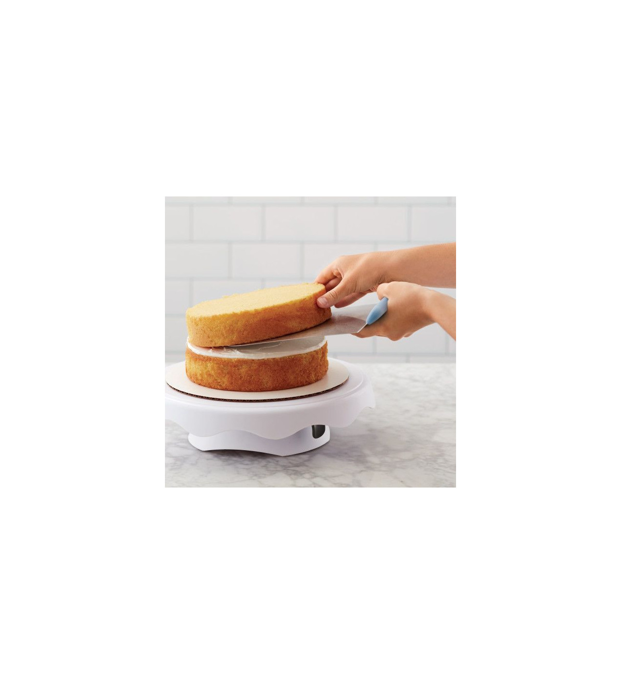 La réalisation d’un layer cake est souvent délicate, surtout lorsqu’il s’agit de découper, puis monter la base du gâteau. Afin d’éviter les catastrophes culinaires telles que le gâteau qui se casse ou qui tombe à la renverse, Wilton vous propose une pelle à gâteau.