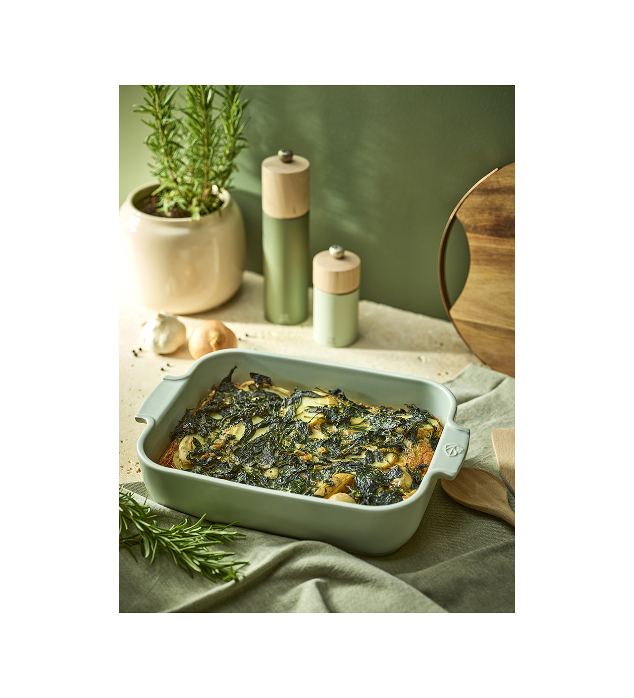 Ajoutez de nouvelles couleurs à vos repas en confectionnant vos recettes dans un plat de cuisson aux teintes attrayantes. Le plat à four Appolia Peugeot est peint d’une délicate couleur sauge qui fera ressortir le côté maison et naturel de vos créations.
