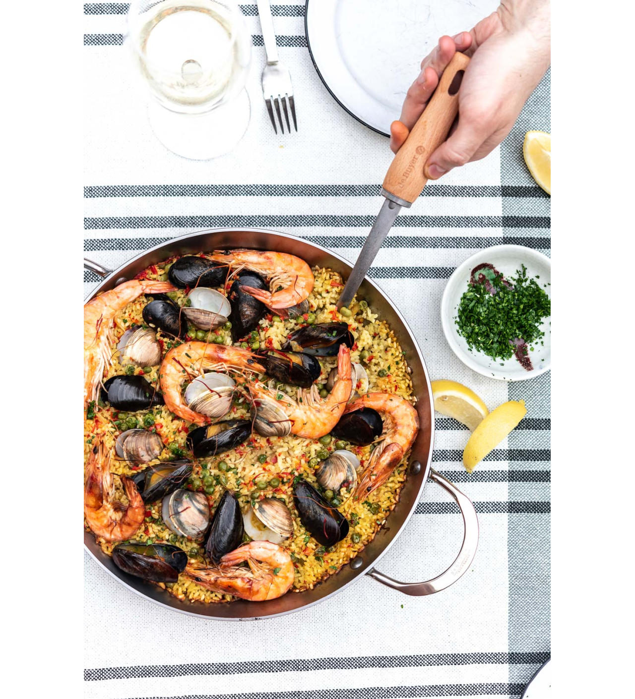 Très résistant, ce plat à paella de la marque De Buyer est de qualité professionnelle. Le plat à paella peut être utilisée sur plaque électrique, gaz, plaque vitrocéramique et plaque à induction.