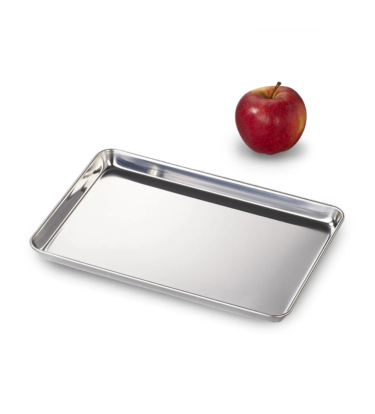 Le plat en inox rectangulaire 25,7 x 17,8 cm possède une apparence simple et moderne et passera presque inaperçu si ce n’est pour ses usages multiples. En effet, ce plat à débarrasser sert aussi bien à trier et contenir des aliments, qu’à la cuisson de ces derniers.