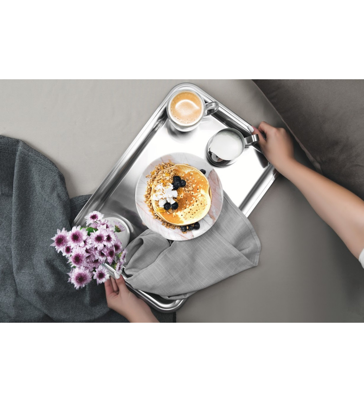 Préparez le plus délicieux des petits déjeuners au lit et présentez-le comme si vous étiez dans un hôtel raffiné avec le plateau de service rectangulaire Tramontina. Fait en inox robuste, ce plat de présentation offre un design épuré et distingué qui transformera le plus simple des plats en un chef d’œuvre à déguster.
