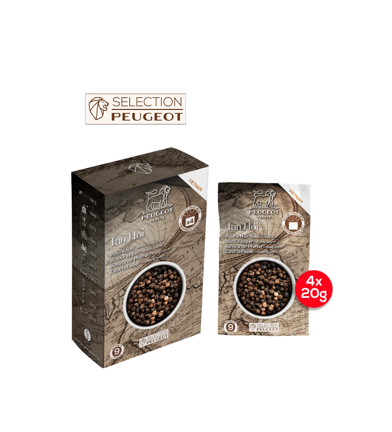 Poivre Noir du Vietnam Tan Hoi Sachet 20 g (x4) Peugeot
