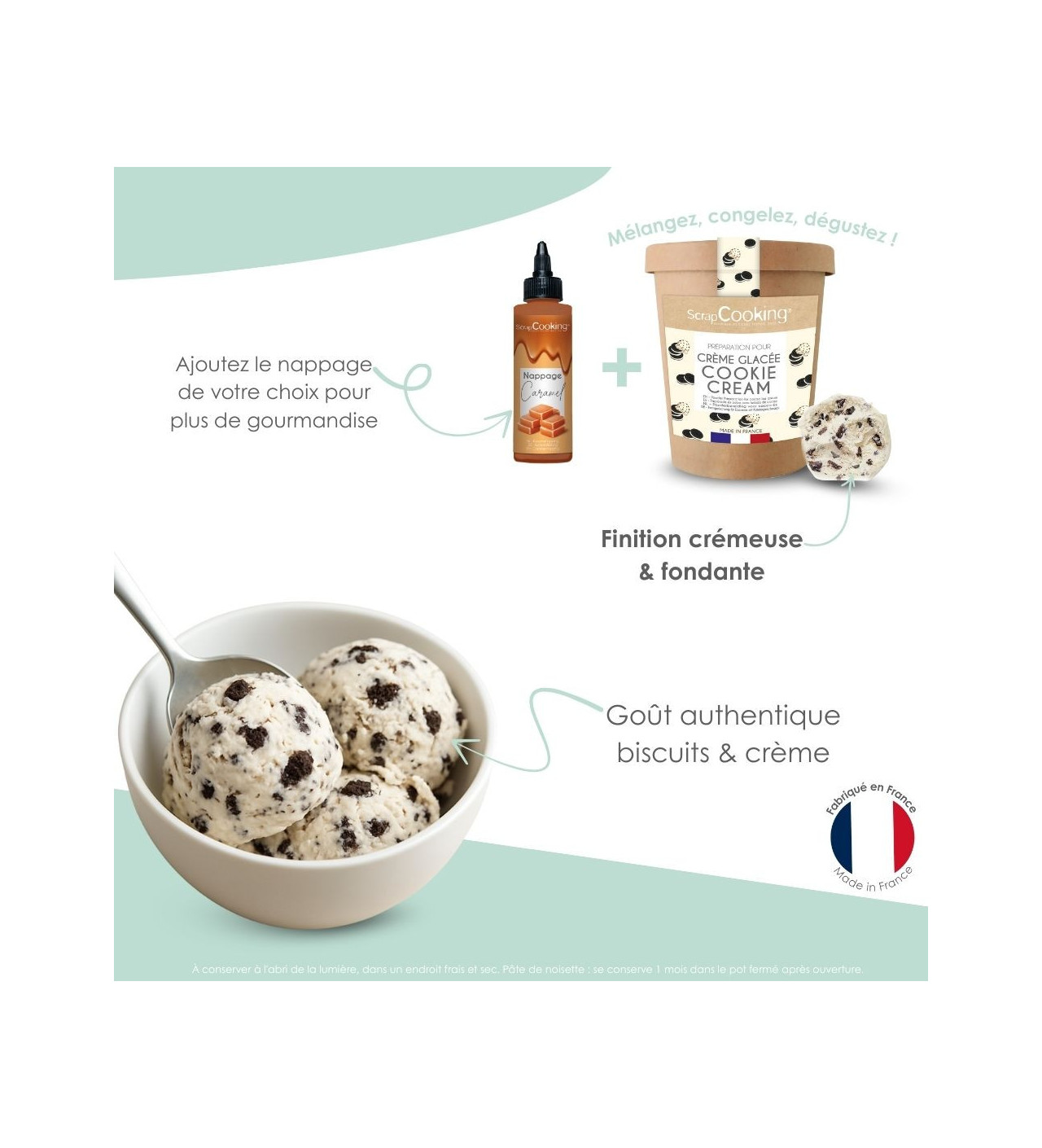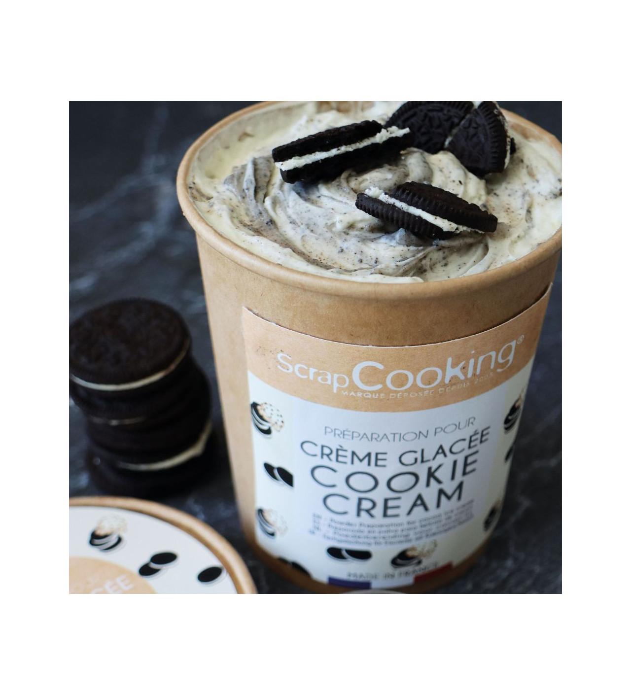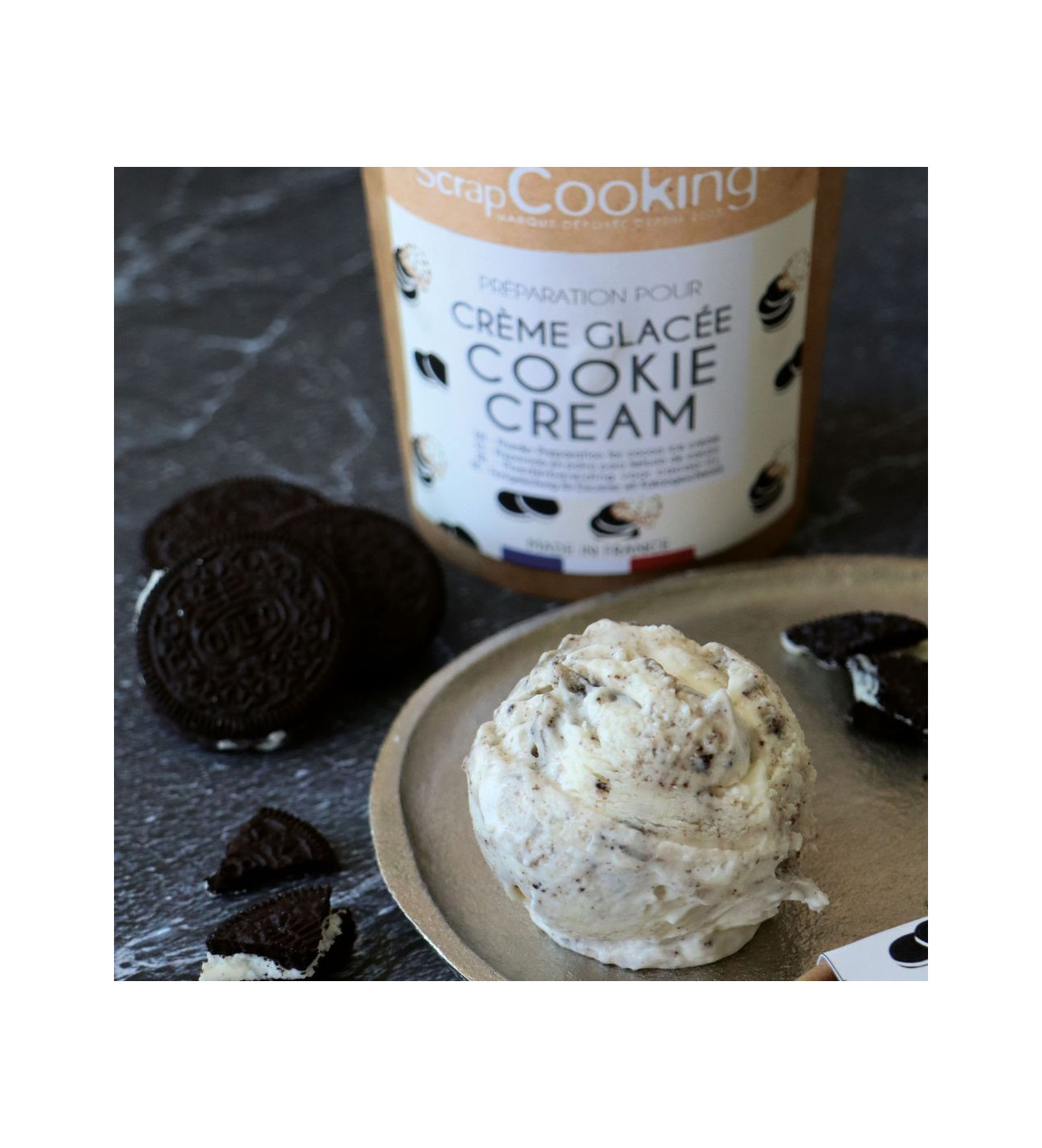 Crème glacée connue dans le monde entier et populaire chez les gourmands de tout âge, la cookie cream s’invite désormais chez vous. Tout ce qu’il vous faudra, c’est le pot de préparation pour glace cookie cream Scrapcooking.