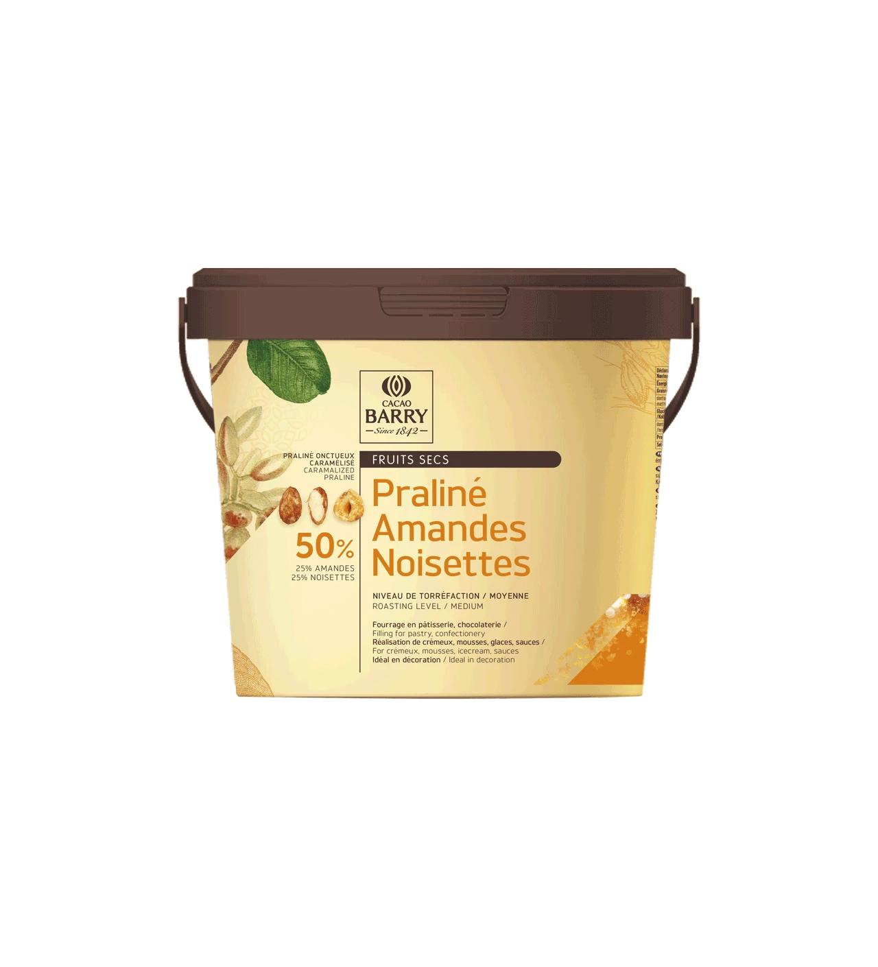 Le praliné amandes noisettes Barry est un praliné en pâte obtenu à partir d’un savoureux mélange d'amandes et de noisettes fraîchement torréfiées. Ce praliné 50% fruits secs se caractérise par des saveurs puissantes et parfaitement équilibrées. Par sa texture et sa robe à la couleur dorée, ce praliné onctueux caramélisé va vous séduire.