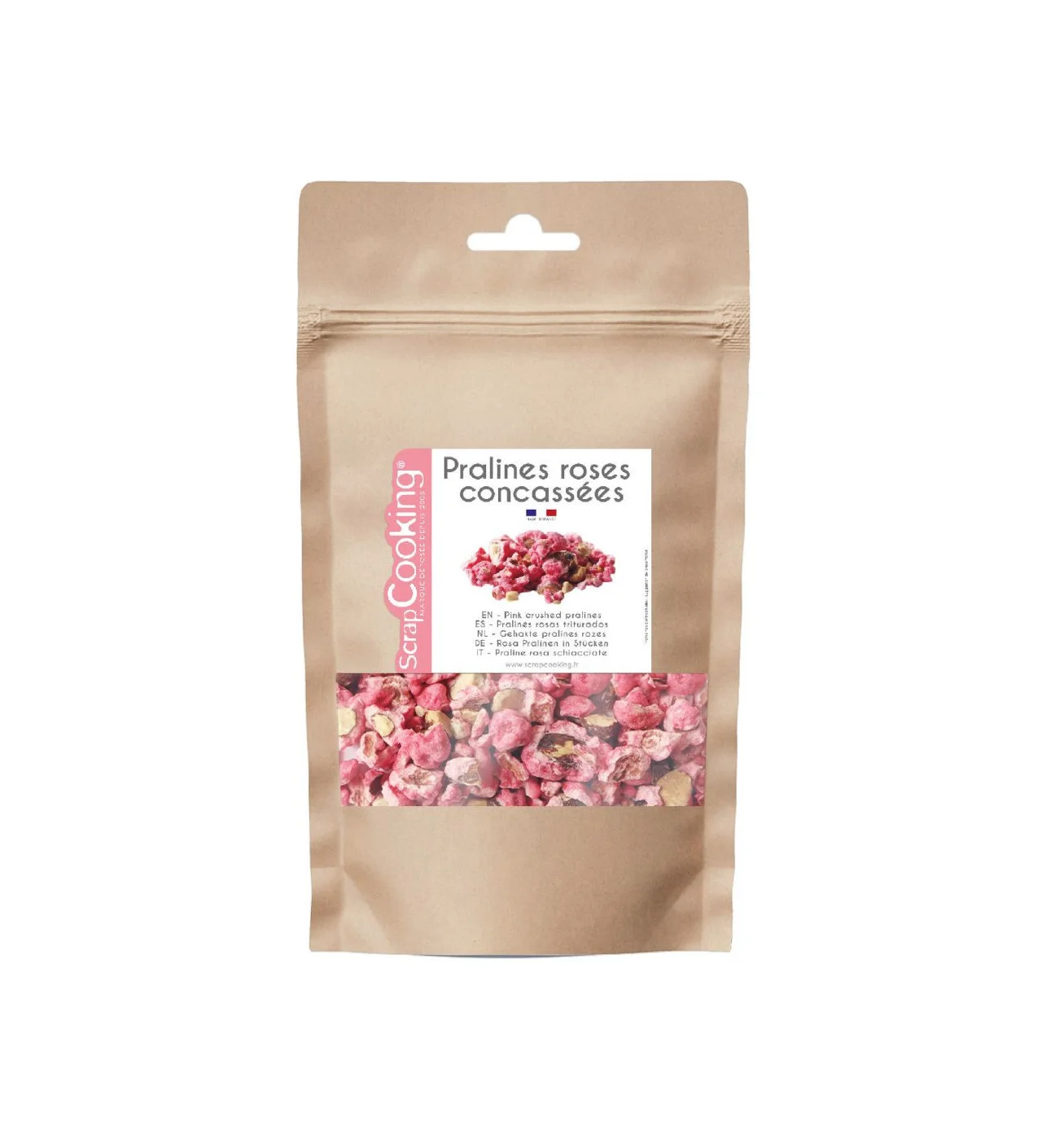 Apportez une touche de gourmandise et de couleur à toutes vos créations avec les Pralines Roses Concassées 140 g Scrapcooking.
