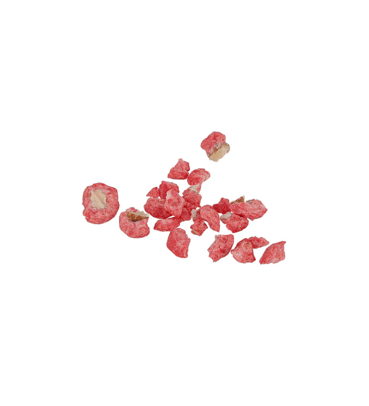 La praline rose est une amande enrobée de sucre caramélisé et coloré. C'est une friandise typique de la ville de Lyon, dans la région Rhône Alpes. Les Pralines Roses Concassées apporteront de la couleur, une saveur douce et sucrée, et du croquant à vos préparations !