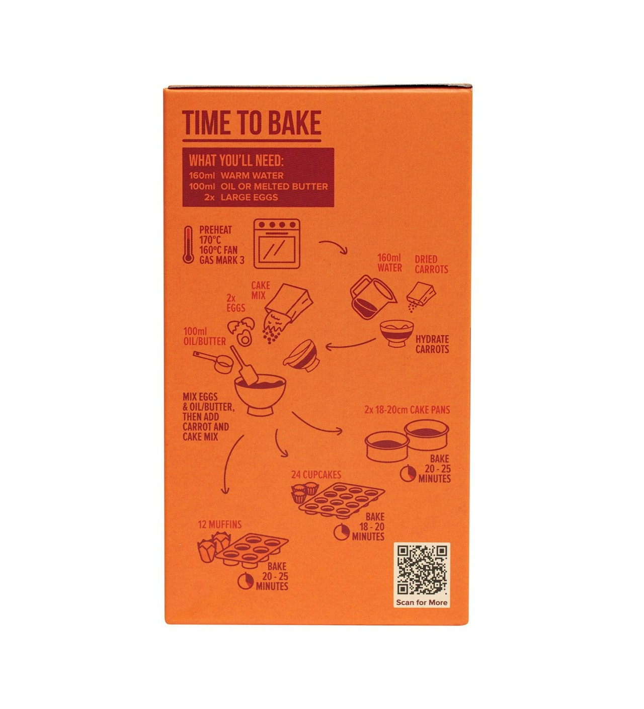 Présentée sous forme de préparation en poudre, cette base simplifie la pâtisserie sans rien sacrifier au goût. Il vous suffit d’ajouter 160 ml d’eau chaude, 100 ml d’huile ou de beurre fondu et 2 œufs, pour obtenir un carrot cake savoureux, prêt à être dégusté tel quel ou sublimé d’un glaçage au fromage frais.