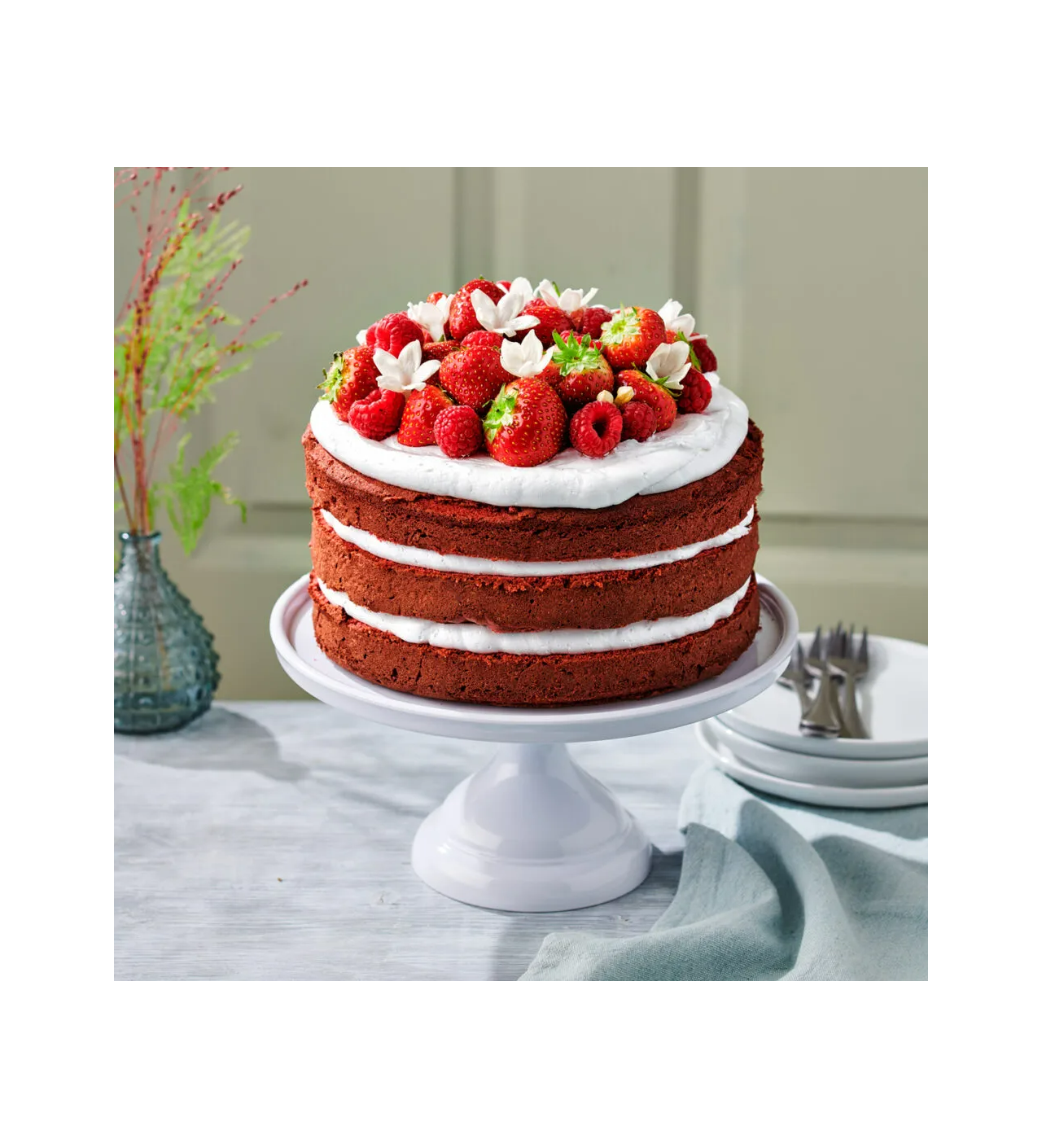 Pour préparer un red velvet gourmand, il suffit de mélanger 400 g de préparation en poudre, 4 œufs et 140 g de beurre. Vous obtiendrez ainsi une génoise à la texture douce et aérienne, un goût subtilement chocolaté et cette couleur rouge éclatante emblématique du Red Velvet.