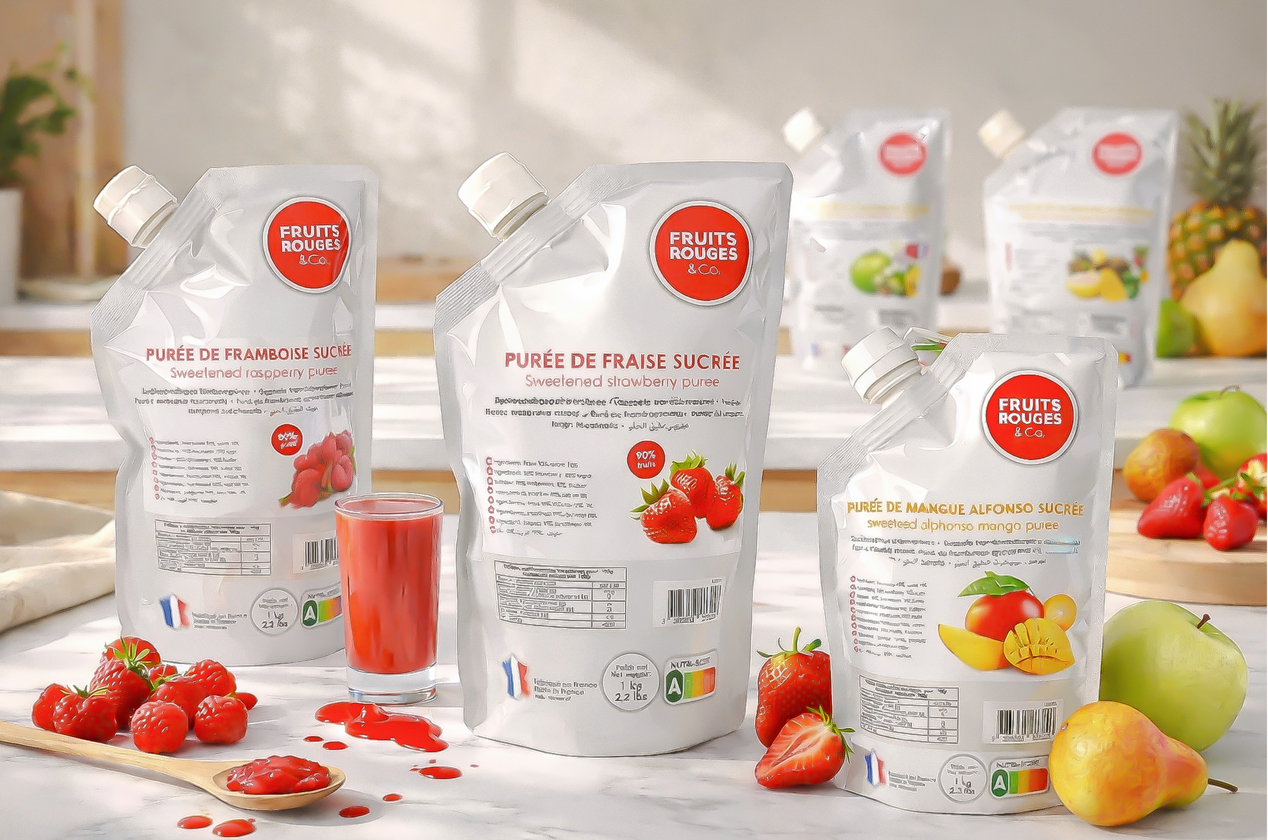 Depuis 1990, Fruits Rouges & Co s'engage à vous proposer des fruits frais respectueux de votre santé et de la planète tout au long de l'année. Dès 2004, la marque prend de forts engagements RSE et devient co-fondatrice du label « Demain la Terre », dont l'objectif est d'accompagner les producteurs vers une agriculture plus durable. Dans cette continuité, les purées de fruits voient le jour : les fruits ne pouvant pas être vendus sur la marché des fruits frais sont ainsi valorisés en purées et coulis !
