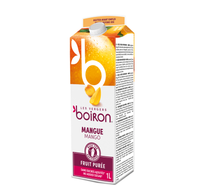 Glaces et entremets auront des saveurs exotiques et fruitées grâce aux purées de fruits Boiron. Dans un carton d'1 L équipé d'un bouchon refermable et d'un bec verseur, cette purée de fruits est le mélange parfait entre praticité et bon goût.