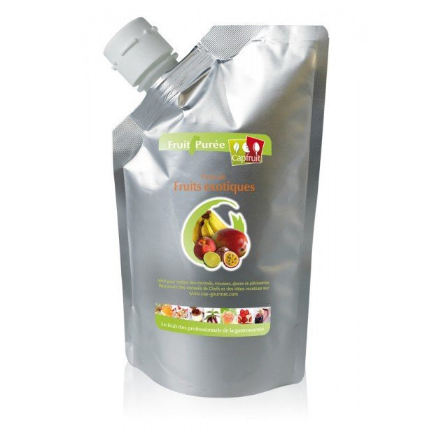 - Un emballage pratique. Présentées en poches stables et souples, les purées de Fruits exotiques peuvent être utilisées immédiatement. Les poches sont pratiques à manipuler et permettent une utilisation en totalité. Grâce au bouchon verseur refermable, le produit est protégé et peut être stocké 8 jours au réfrigérateur après ouverture.