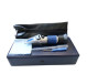 Pratique, le sorbetomètre est livré dans une boîte avec un étui de transport en similicuir, un tissu de nettoyage, une pipette d'aspiration et un tournevis pour l'étalonnage.