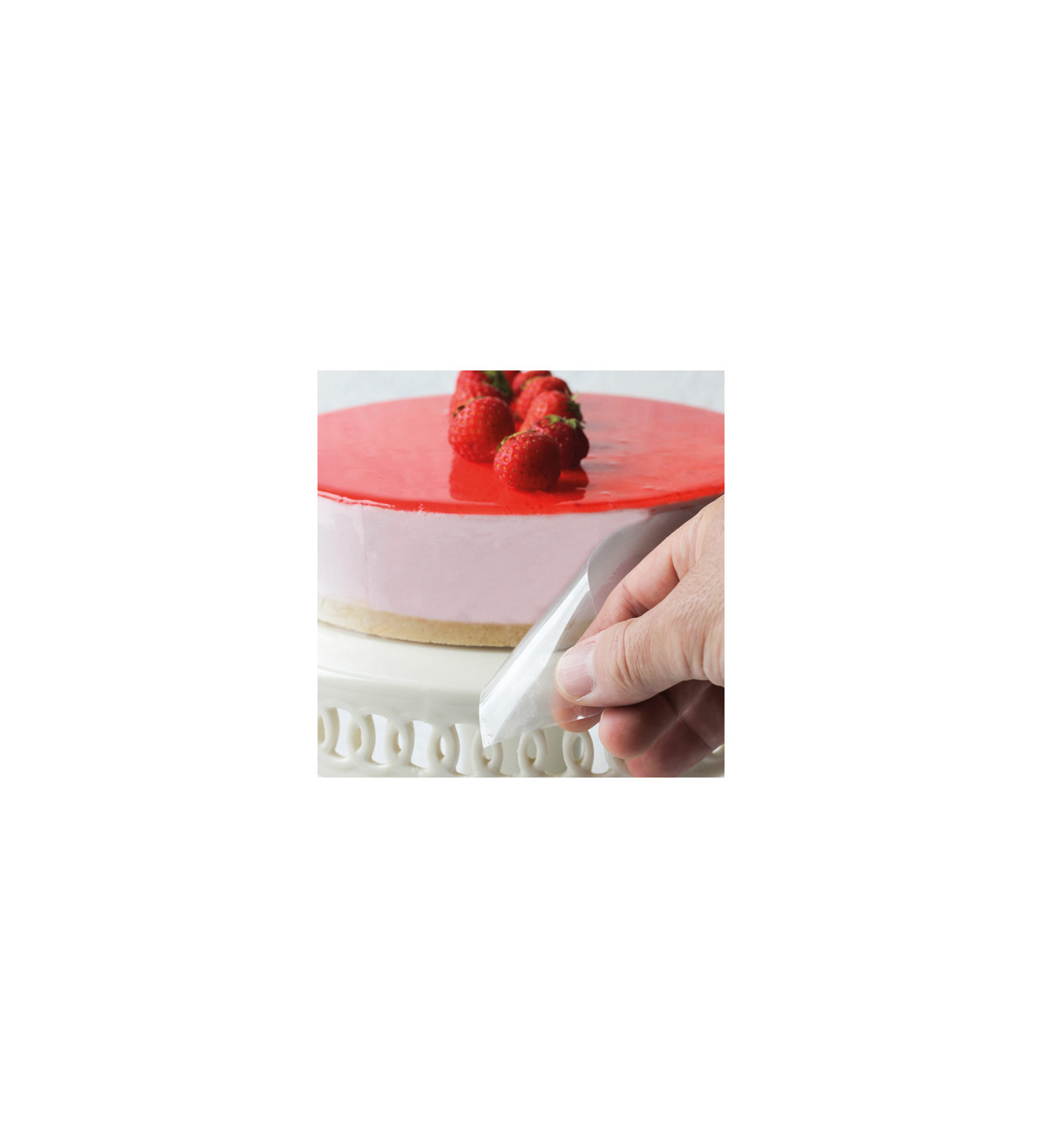 Afin que votre charlotte aux fraises ou que votre entremets au 3 chocolats se démoule facilement, pensez à découper une bande de Rhodoïd afin de chemiser votre moule. Composé d'acétate de cellulose, il présente une surface lisse et brillante.