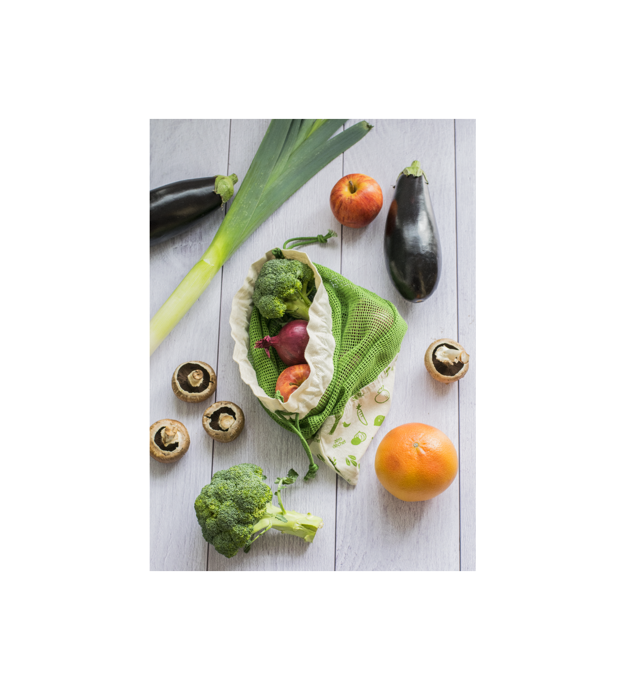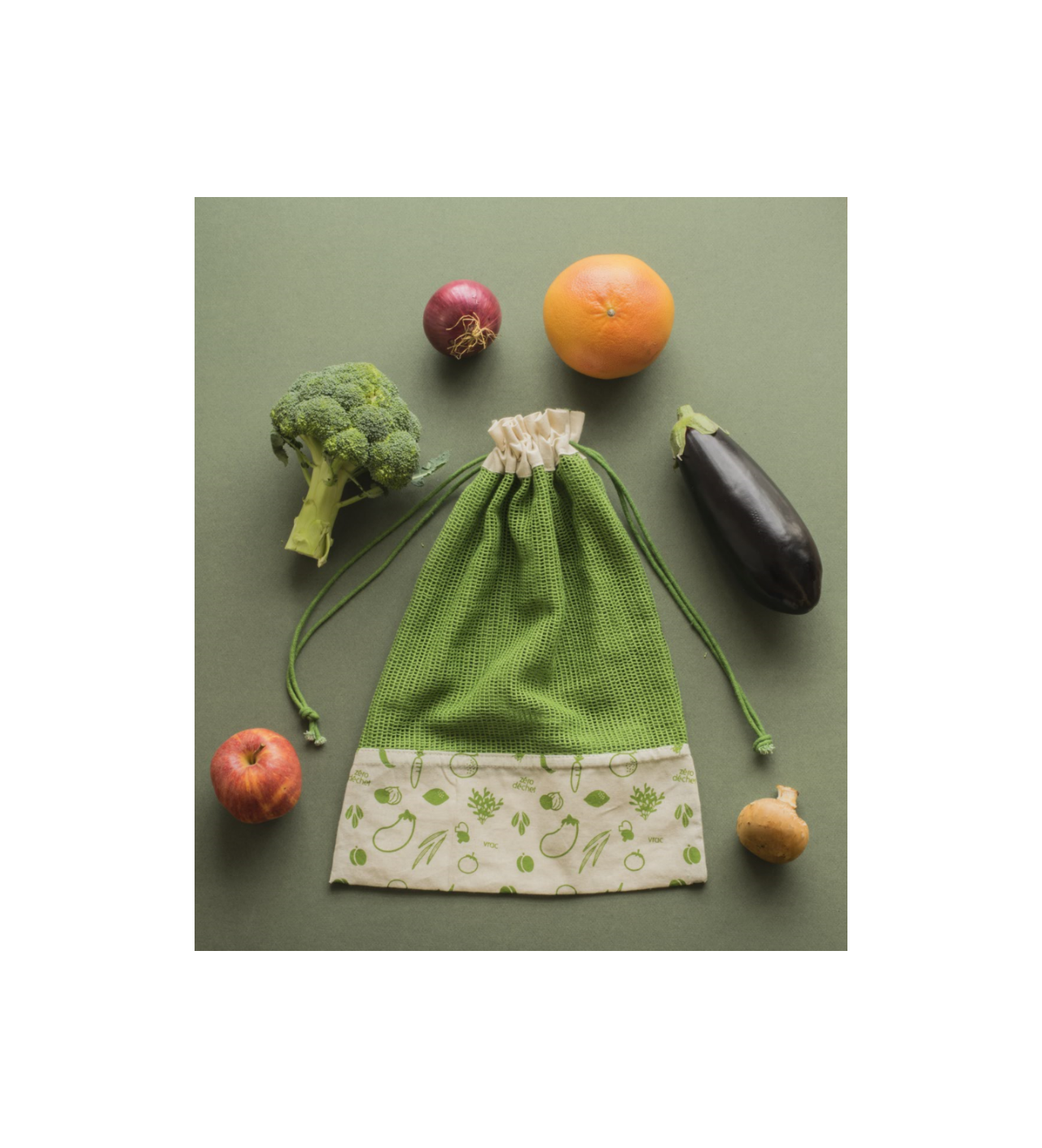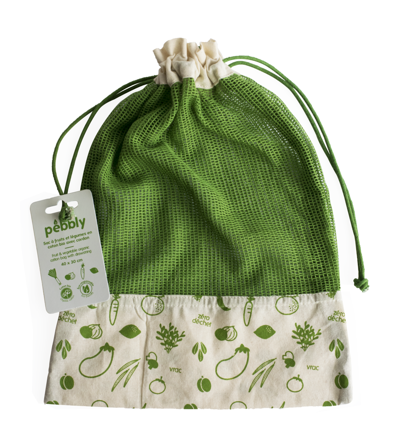 Que ce soit pour vos courses, le transport ou la conservation, optez pour le sac à légumes coton bio vert Pebbly pour définitivement dire au revoir au plastique et bonjour au zéro déchet !
