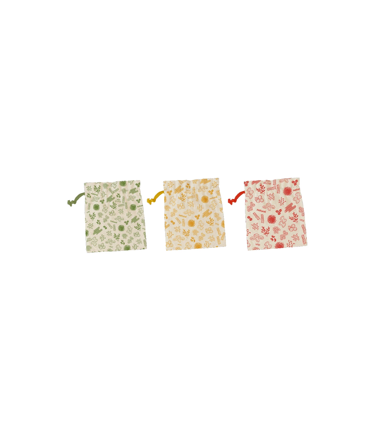 Chaque sac vrac, fabriqué en coton biologique, possède un cordon de resserrage pour maintenir les aliments en place le temps de vos courses et du transport. Les 3 sacs coton ont le même format (20 x 25 cm) mais se différencient par la couleur de leur motif (vert, jaune ou orangé). Pour faciliter toujours plus votre quotidien, les sacs vrac zéro déchet sont lavables à 40°C (à la main) et ainsi réutilisables.